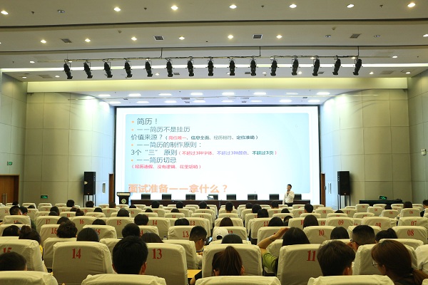 阎旭经理从毕业生职业生涯确定、应聘准备、简历的编制、职业的价值取向、职业发展等方面进行了指导。他着重介绍了应聘面试前的准备工作、面试礼仪、面试攻略及面试的回答技巧。阎旭经理结合自己面试官的经验,深入剖析了面试官的心理以及作为面试者应该注意的问题,并引用了大量案例,深入浅出的讲解,给同学们上了生动的一课。对于现在面临就业压力的同学们来说,有着非常重要的指导作用。