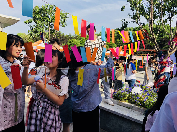 活动分为“盛夏如花,向阳不变”、“希望如火,满天心星”、“沁人心扉,信子传情”、“樱花飞舞,心语绽放”四个活动区,花样游戏“我是心灵小邮差”拉近了参与者的心理距离,“指尖上的少女心”通过黏土制作让大家感受简单的快乐弥足珍贵,“心球大战”则让同学们在团队作战中挑战自我,点燃青春。大家穿梭在各个区域,一路闯关,获取印章,换取奖品,在有趣的活动中丰富了心理体验。