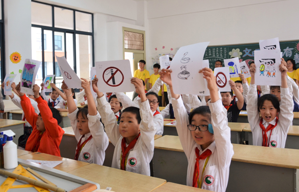 5月29日下午2点,茅山校区携手春城实验学校开展“大小拉小手共创文明无烟环境”世界无烟日主题活动。