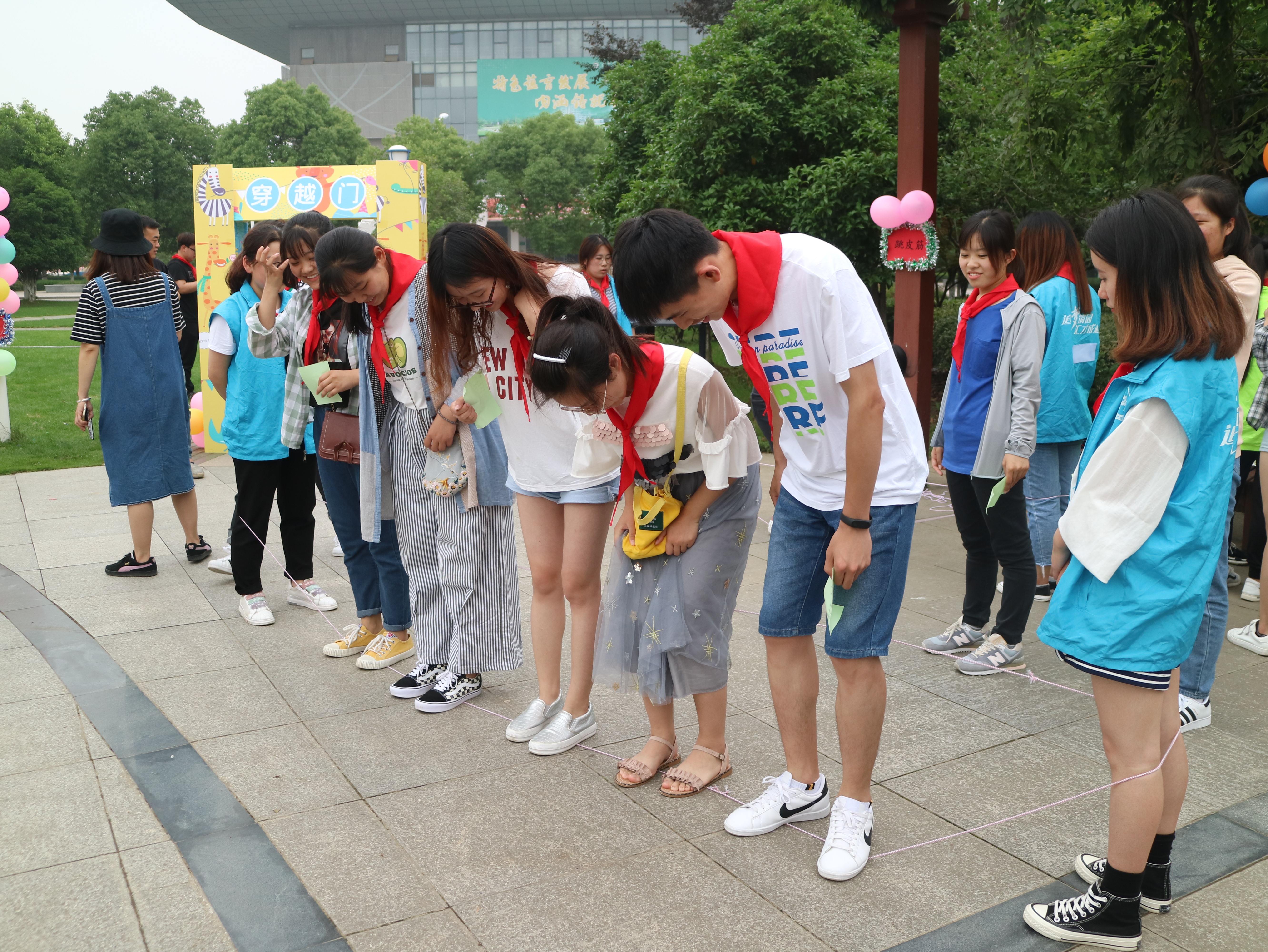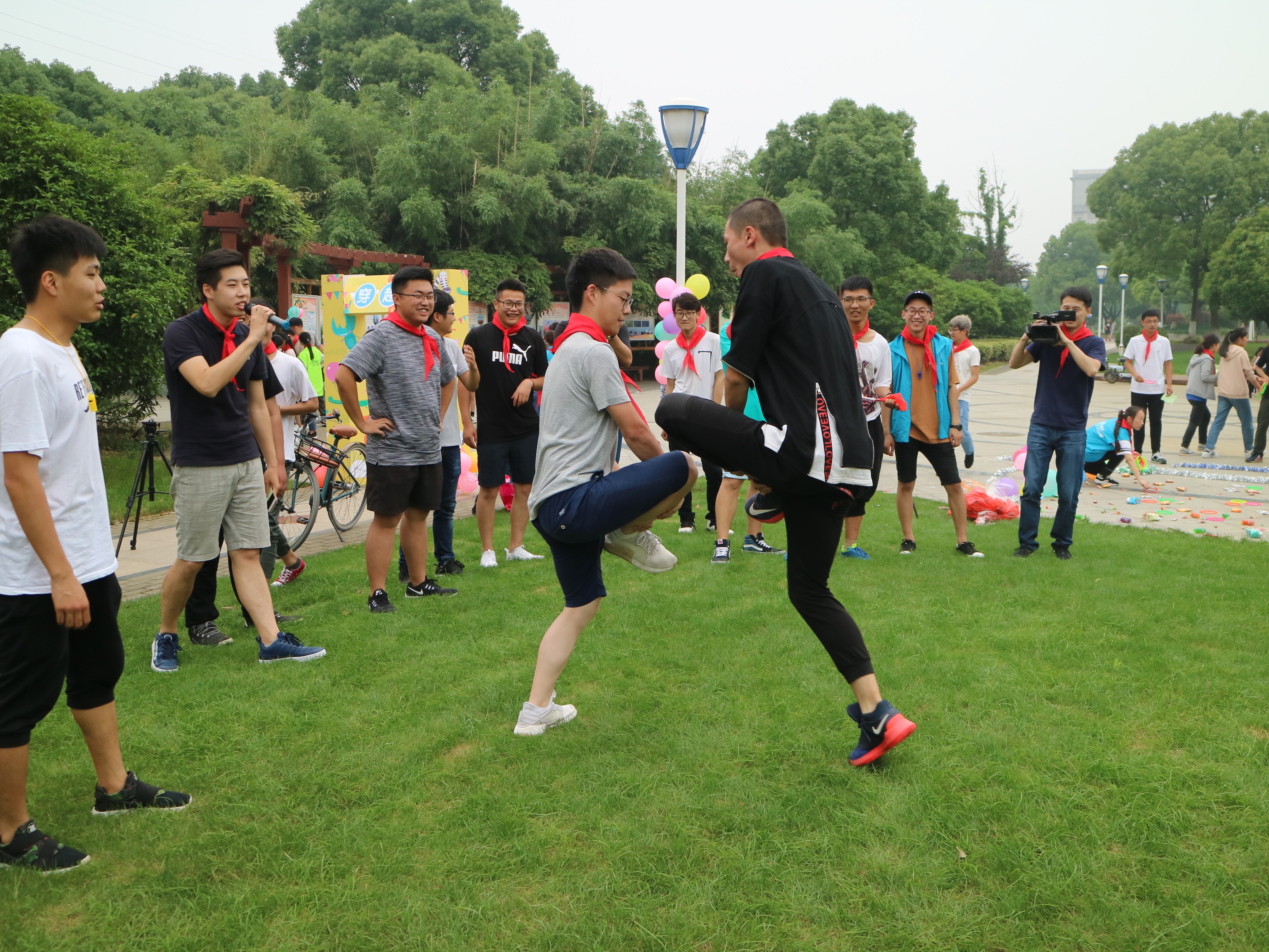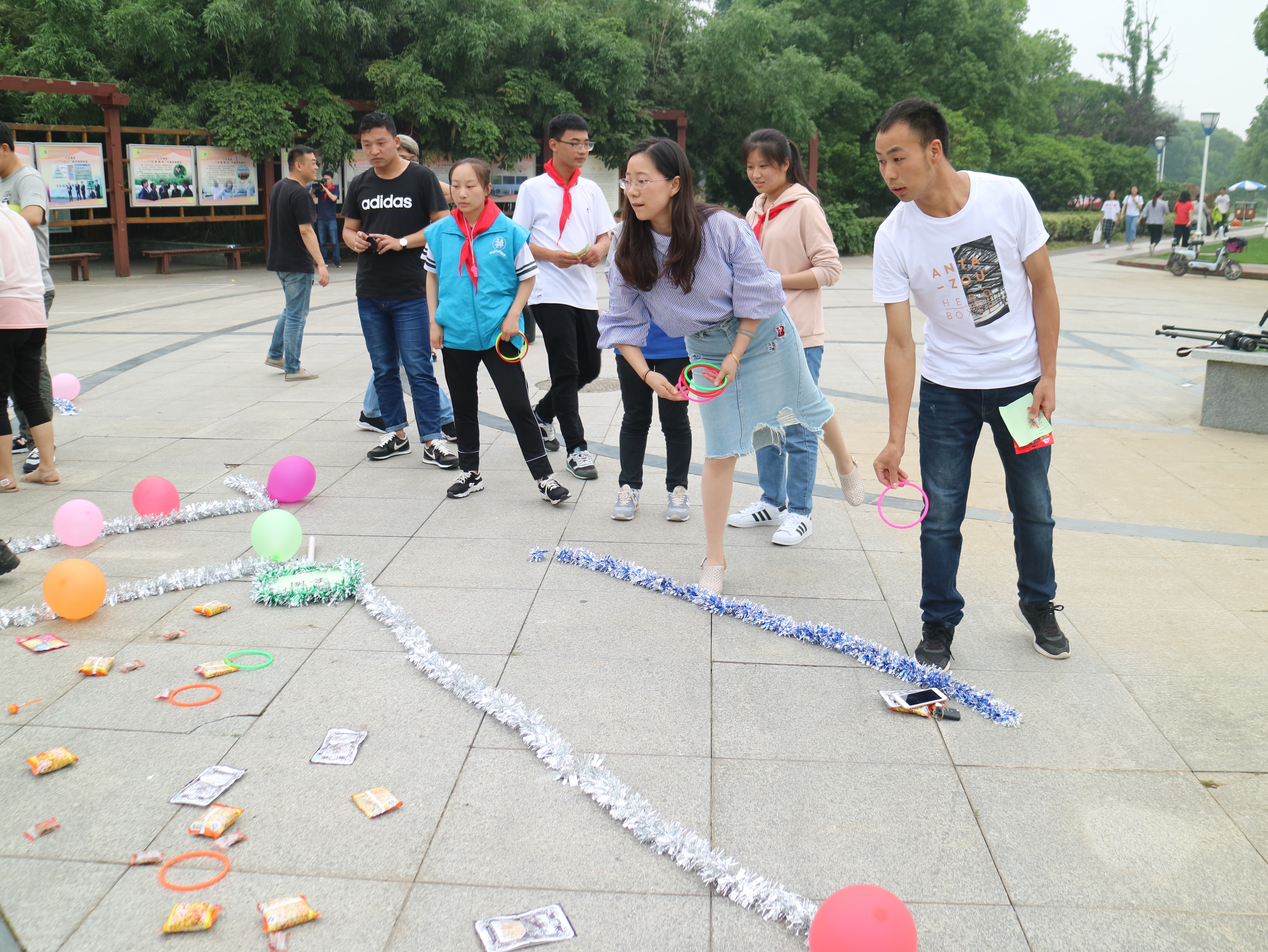 本次游园会设有“萌照连连猜、斗鸡、跳皮筋、打元宝、套圈”、“老鹰捉小鸡、折纸飞机”、“积分兑换” 三个板块。现场人山人海,在“萌照连连猜”环节中,参赛选手把同学们的童年照和成年照对应起来,考验大家识别能力,大家认真寻找比对,看到同学之间的童年照片,欢声笑语不断。在忆童年“跳皮筋”、“打元宝”、“斗鸡”、“老鹰捉小鸡”环节中,加油声不断、掌声不断,在欢快的气氛中,励志广场成了一片欢腾的海洋。