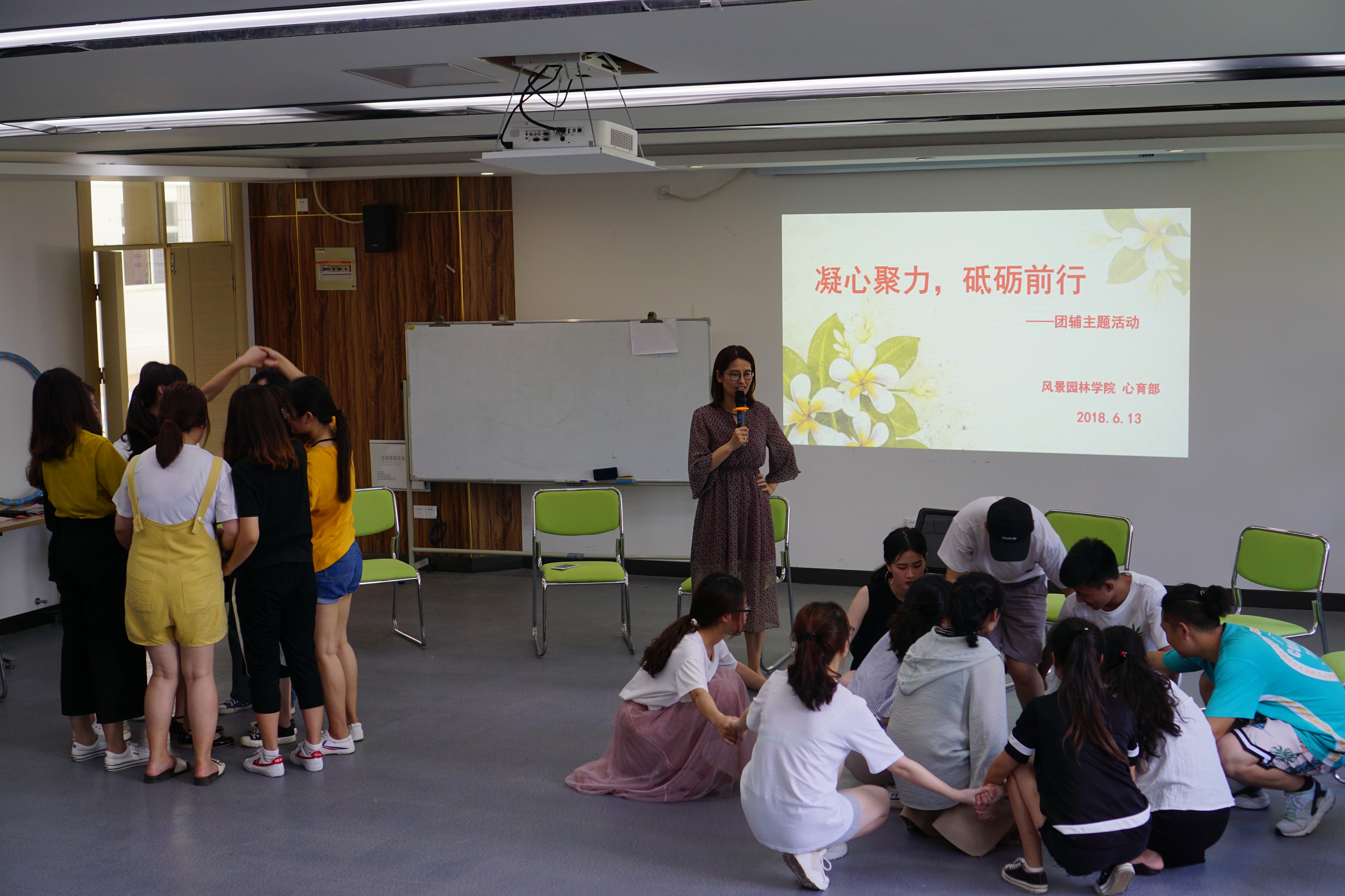 6月13日下午,风景园林色花堂 心育部在创客空间105开展了“凝心聚力,砥砺前行”心理团辅活动,16园林技术3班全体同学参加。