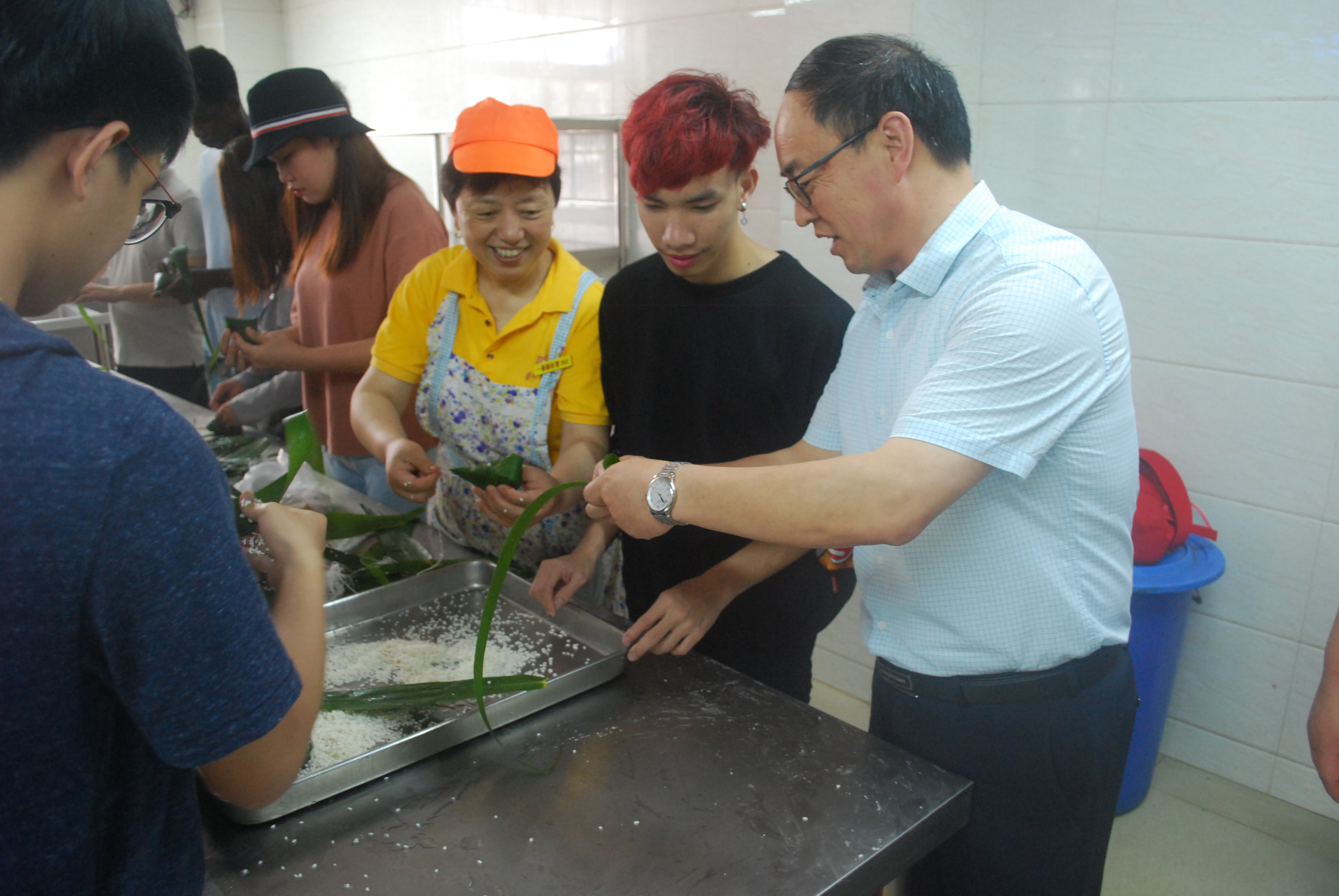 6月15日,后勤管理与服务中心膳食科与国际交流中心在师生食堂共同举办了一次热闹、有趣的包粽子活动。此次活动吸引了来自老挝、印度尼西亚、刚果、肯尼亚等国家的十几位留学生参与。