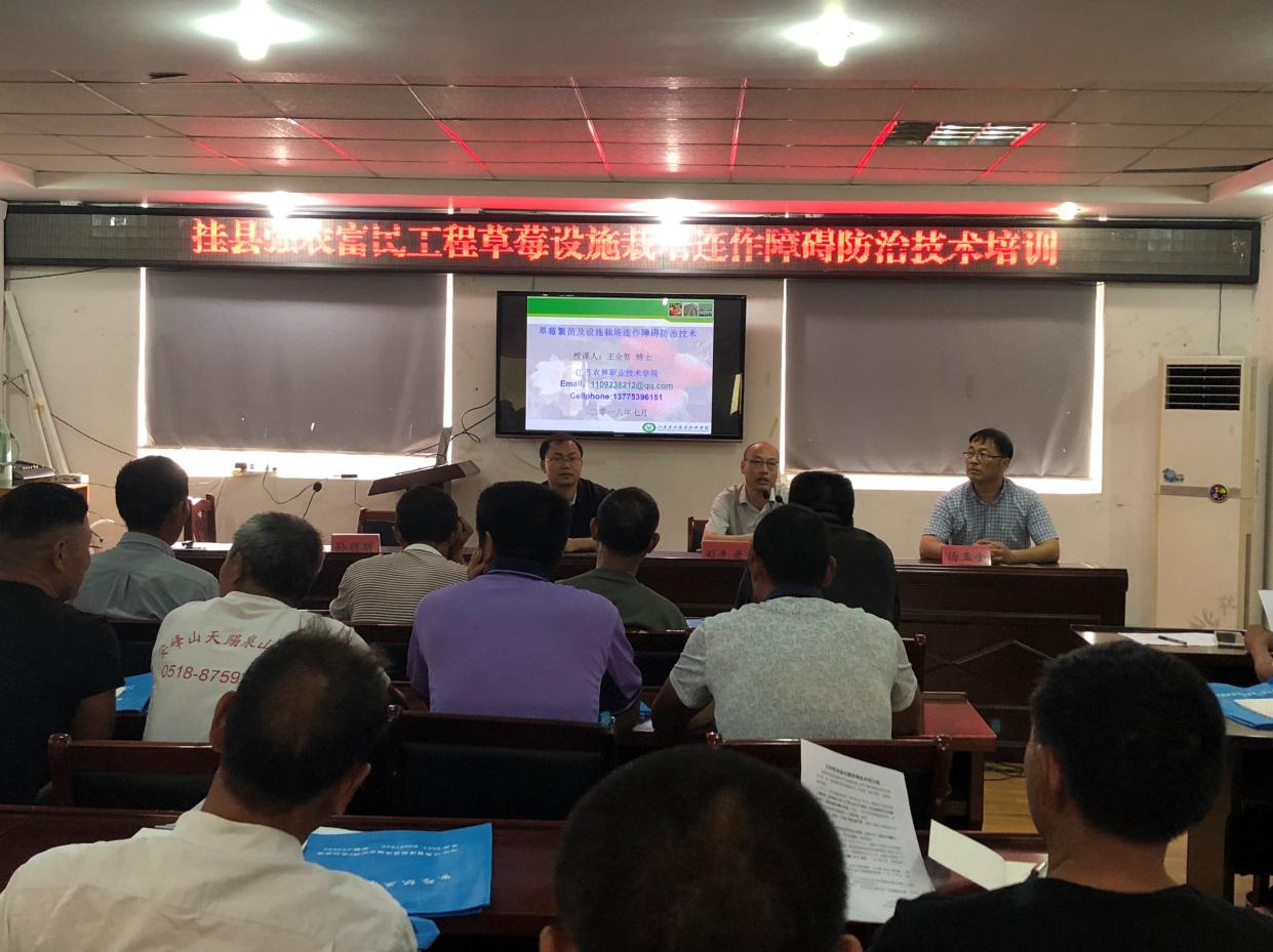 为加快推进我院挂县强农富民工程工作顺利实施,更好地服务“三农”。7月6-7日,我校挂县强农富民工程沭阳县专家工作组联合沭阳县农业委员会在沭阳县茆圩乡政府开展了草莓繁苗和草莓设施栽培连作障碍防治技术培训。