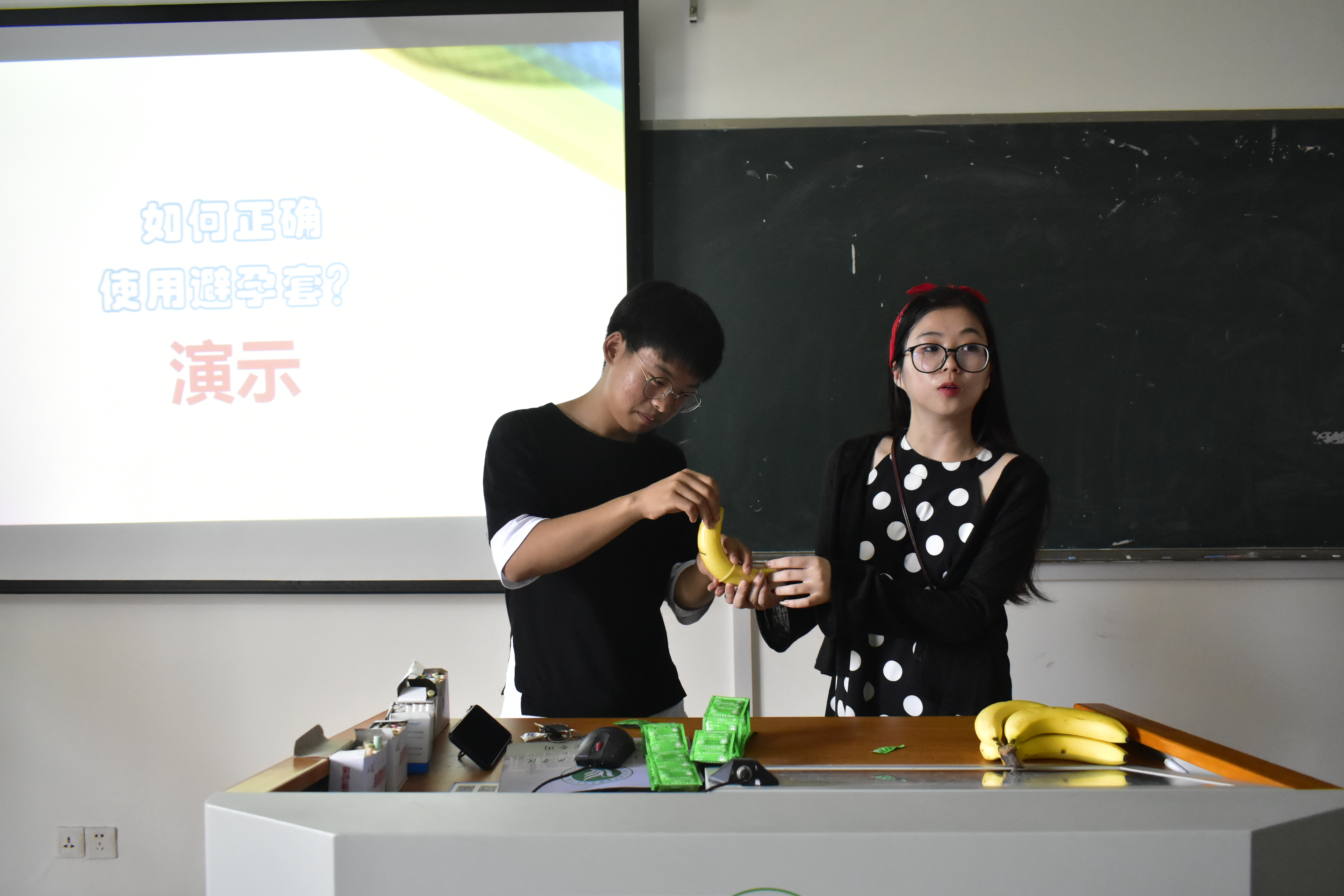 活动开始,主持人分发了防艾宣传手册,通过ppt介绍了艾滋病的病因、传播途径和预防措施,使同学们对艾滋病有了更深一步的认识,同时也在同学心中敲响了防艾的警钟。接着,主持人通过竞答的方式与同学们互动,并给回答正确的同学分发小礼物,一时间抢答声不断,将活动推向了高潮,也让同学们更加深刻的认识到了艾滋病传播速度的可怕与危害。最后,主持人还和现场同学配合演示了安全套的正确使用方法,使防艾安全观念深深地烙印在了同学的心底。