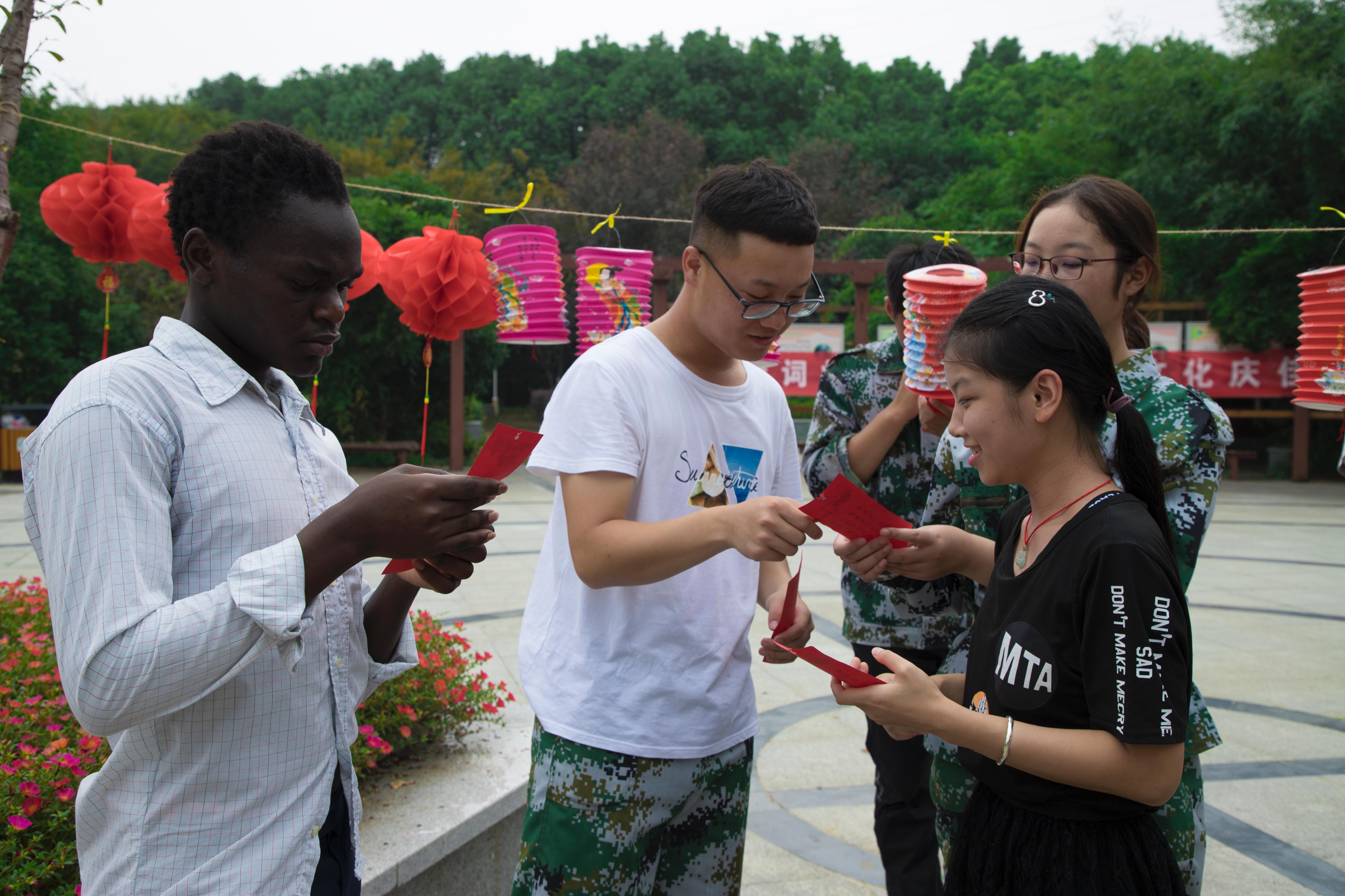 的大一新生代表和留学生代表参加了此次活动。活动分为“诗词飞花令”、“趣味灯谜会”、“印象中秋”三个环节。“诗词飞花令”让在场的大一新生们大显身手。一个个含有灯谜的灯笼悬挂在校园励志广场的树上,学生们驻足思考,你一言我一语,场面热闹非凡。两位留学生用汉语朗诵了苏轼的《水调歌头.明月几时有》,饱含深情的朗诵赢得了在场同学们的阵阵掌声。