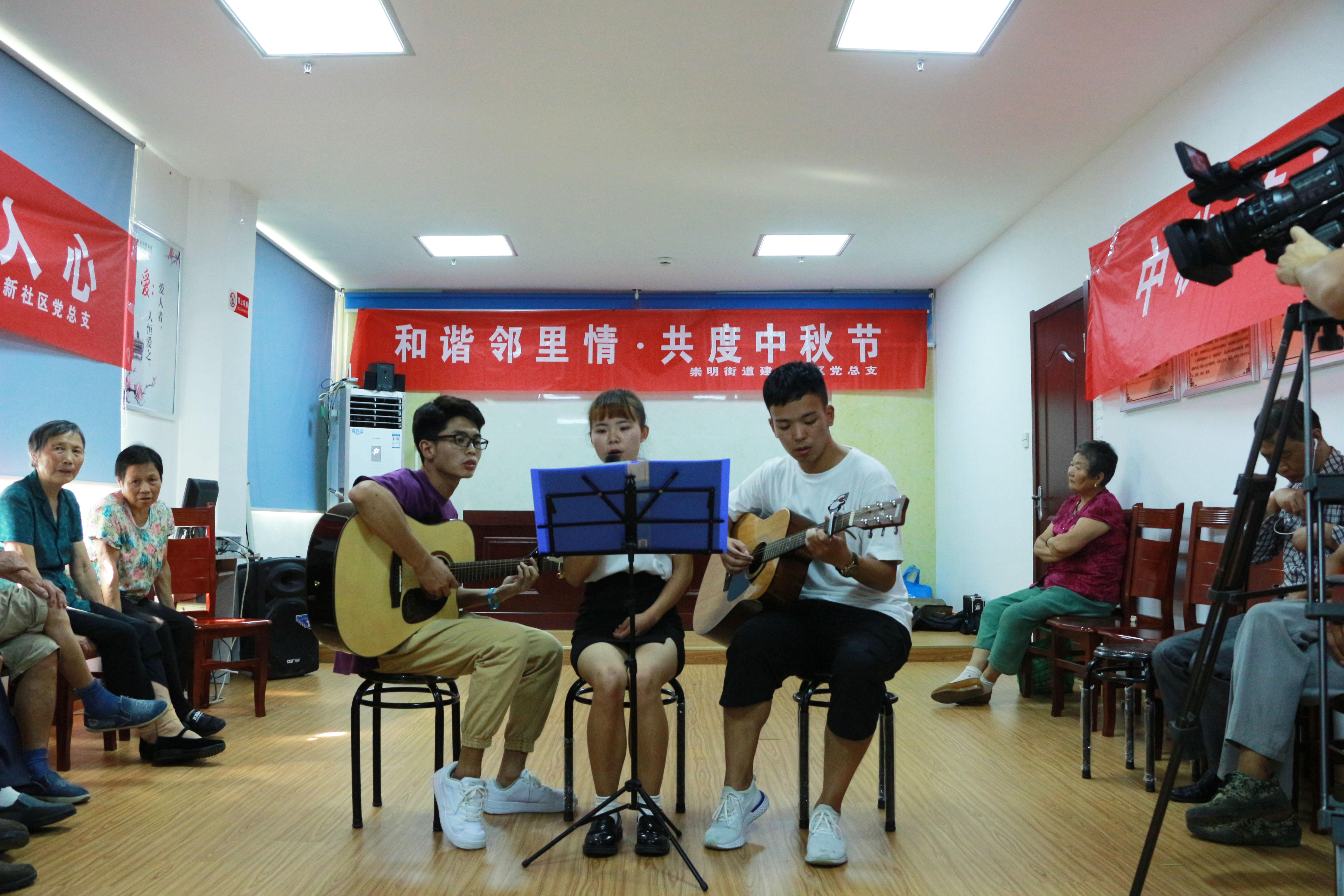 联合“社会儿女”志愿者,为建新社区的叔叔阿姨开展了一系列的文艺演出与互动,一起欢度中秋。学生同社区人员一起在移风易俗中体现人文关怀,享受了节日的快乐。