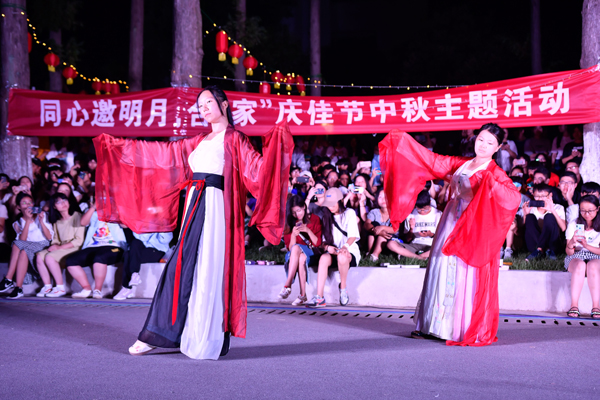 茅山校区团委开展“同心邀明月,合家庆佳节”中秋节活动。各式各样花灯展吸引了2000余名新生前往赏花灯、猜灯谜、诵古诗。活动共分为“欢乐在茅山,情浓意更浓”手工月饼体验、中秋游园会、“新生才艺秀、与你共约月圆夜—古诗词朗诵四个环节。来自32个民族的新同学欢聚一堂,热闹非凡。活动现场,藏族小伙的歌舞更是把活动推向了高潮,多名学生一起走进场地与他们一起载歌载舞。