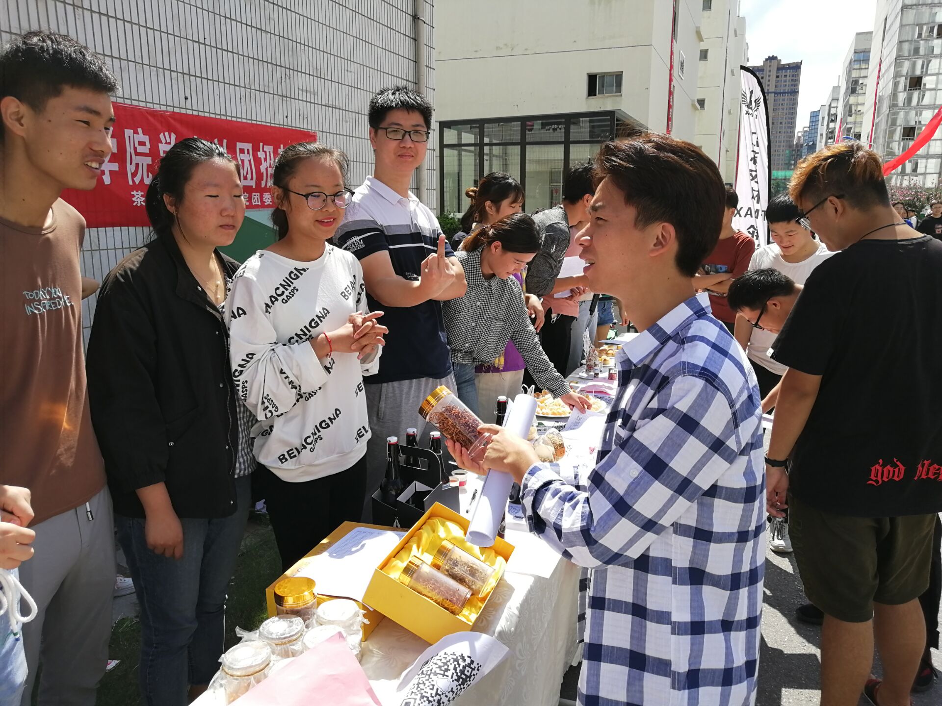 举办了“燃烧你的卡路里 不负青春不负卿”社团文化节之招新活动。化学与生活社团、食用菌创业社团、发酵社团、果蔬创意社团、百果香酒庄社团、烘焙社团、营养协会、食品检测协会、制药E族社团、阿米巴创业社团、青年志愿者协会、知行社等12个社团参加招新,吸引全院师生目光。