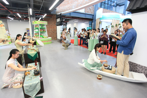 此次茶艺编创,主要将扬州的琼花、蒲扇、油纸伞等地方文化特色与茶相结合,通过民俗茶艺表演的形式,传播茶文化,现场表演引来了大量游客驻足观看。