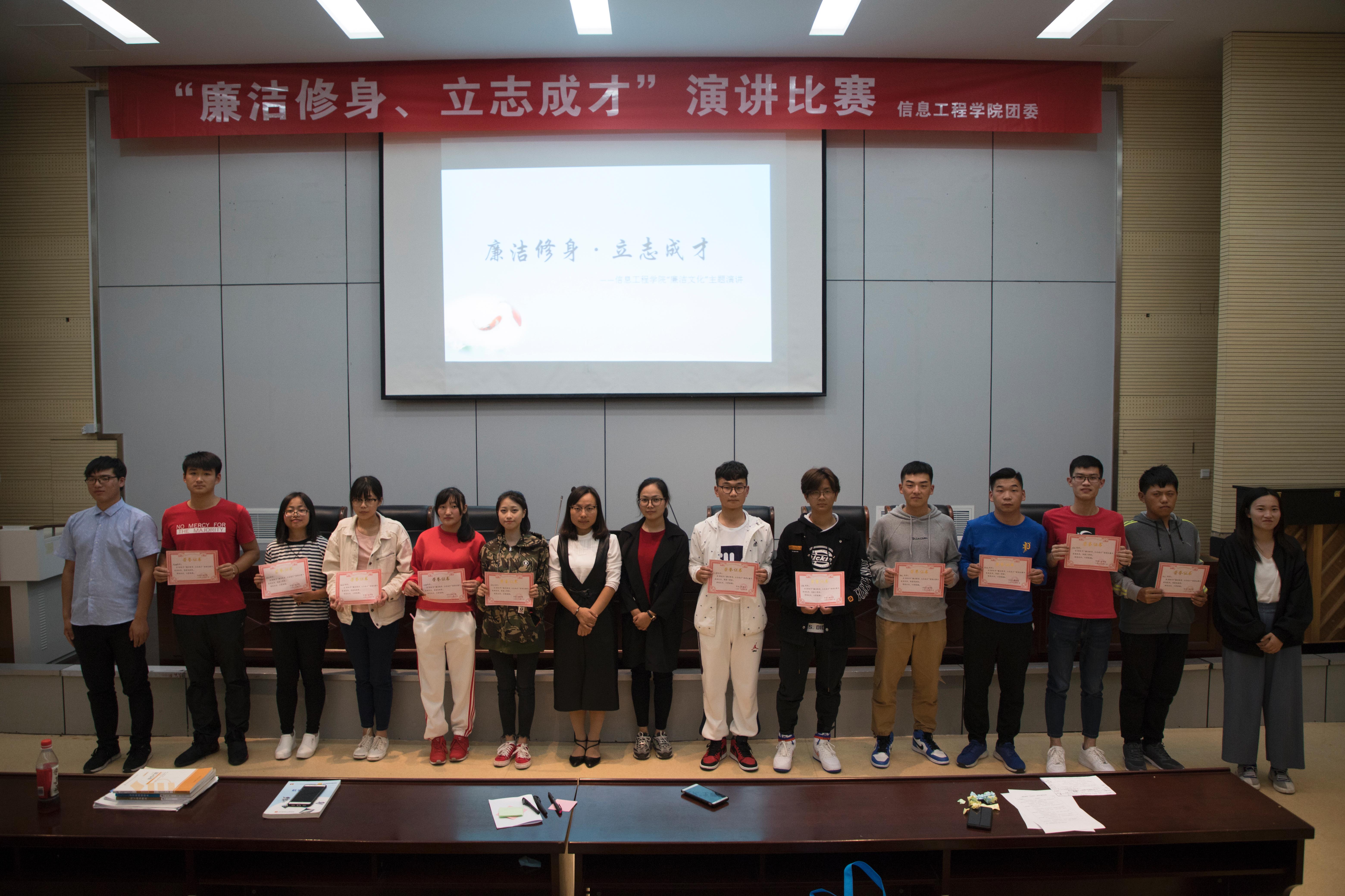10月9日,信息工程色花堂 团委在研发楼报告厅开展“廉洁修身、立志成才”主题演讲比赛,11位选手参加了此次比赛。