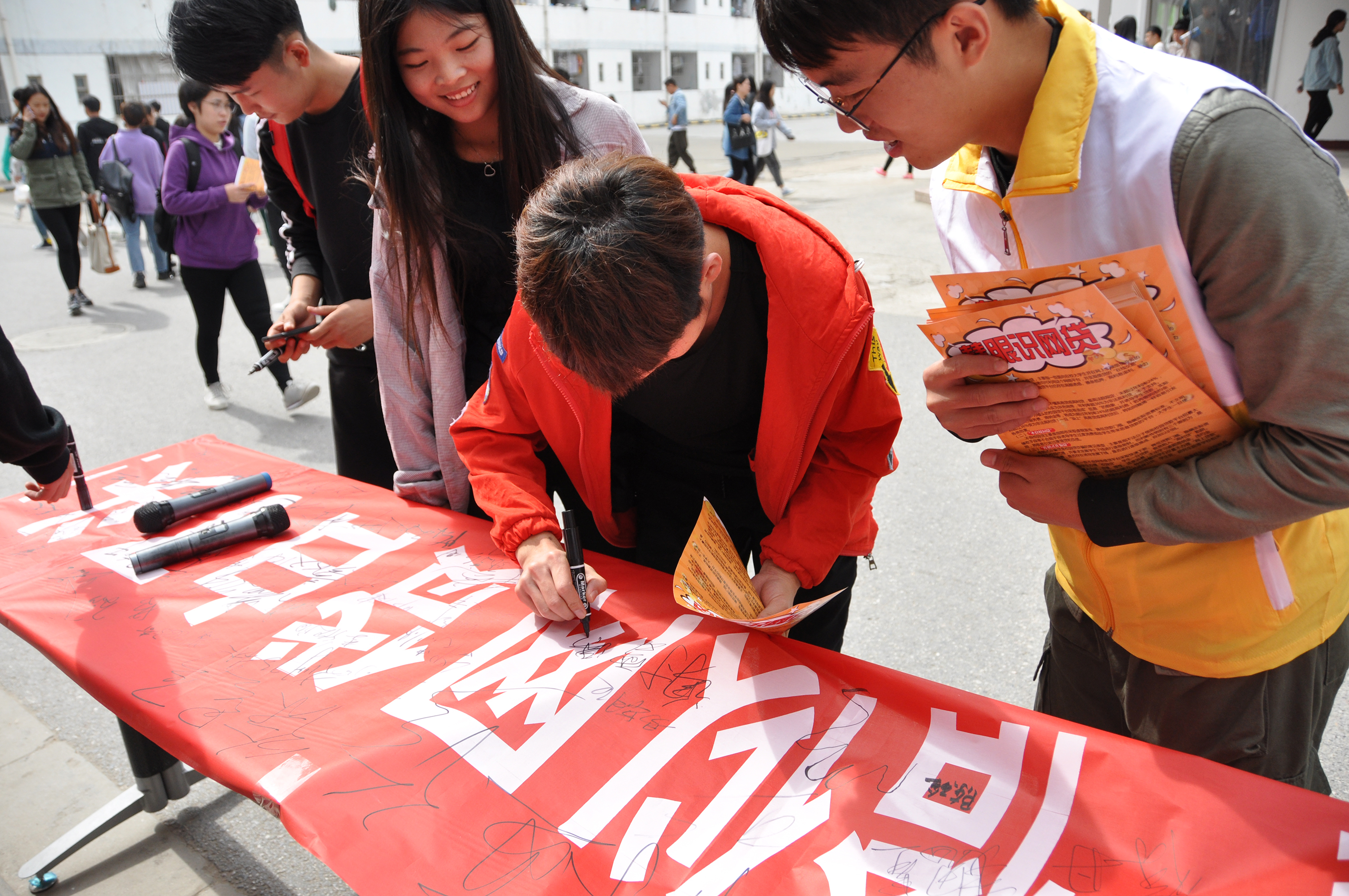 活动现场,印着警醒标语的横幅吸引了过往同学。益动社志愿者们纷发精心设计的宣传页,并在现场进行随机调查,针对同学们对校园贷的理解误区,志愿者都一一耐心解释。过往同学受教育后,均在横幅上签下姓名,表示要携手抵制校园贷,营造和谐、美好的校园生活。