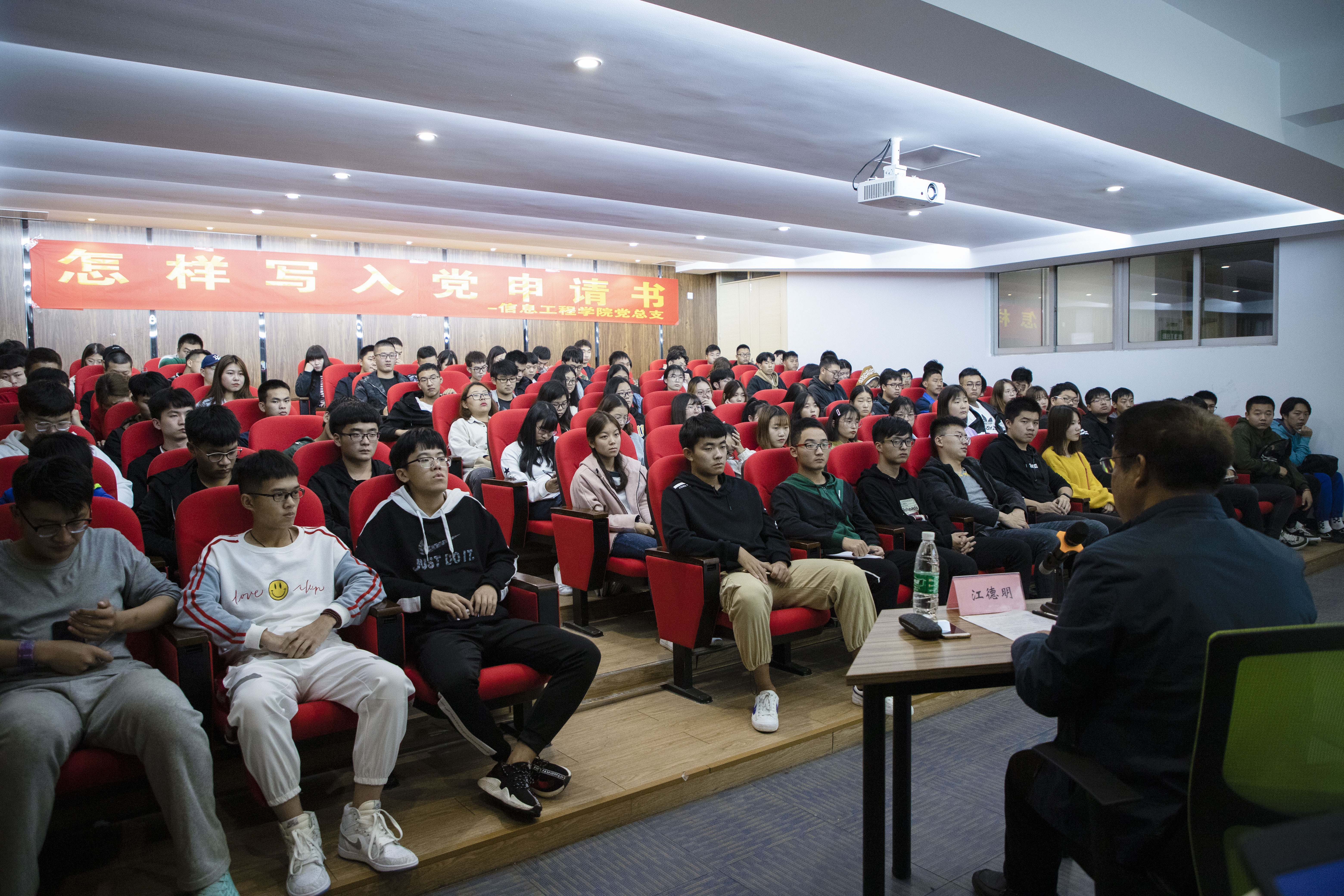 江主席从入党申请书的基本写法以及撰写的注意事项等两个方面入手,给同学们详细讲解了撰写入党申请书的格式和要求。讲座过程中,江主席用生动、朴实的语言和大家分享了在党的培养和教育下,政治立场、思想行动和能力锻炼等方面的成长历程。 最后,江主席希望同学们在未来的学习中,加强思想政治理论学习,积极主动向党组织靠拢,争取早日加入中国共产党。