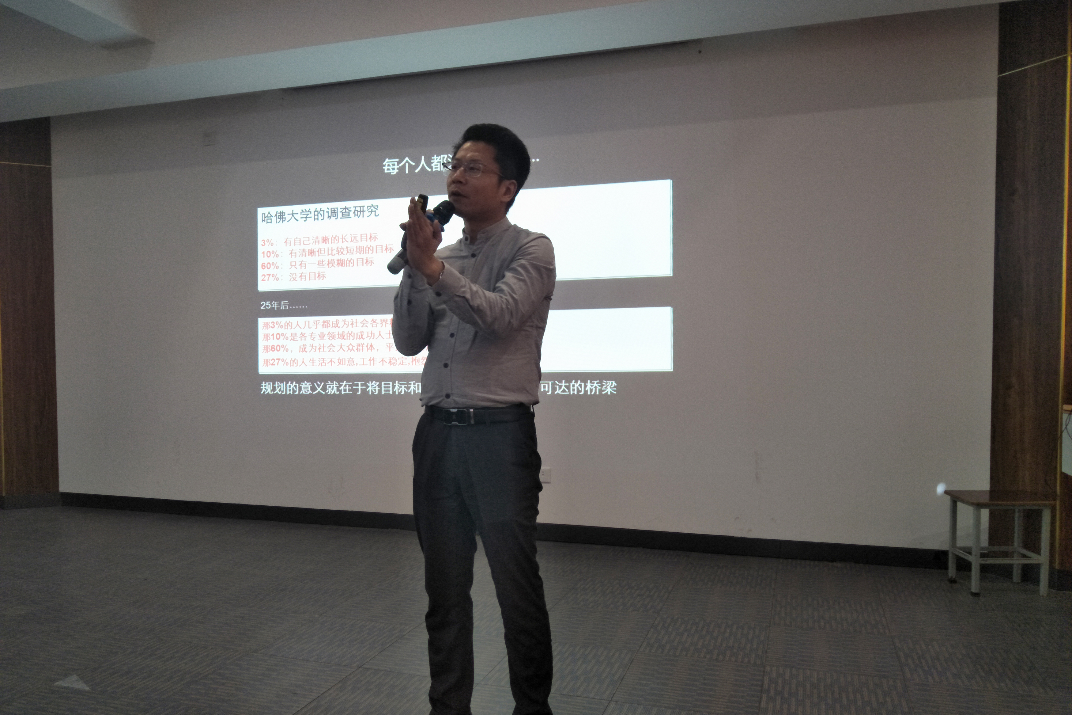 讲座开场借用《三国演义》中人物特性与职场的对比牢牢吸引了听众的注意力,将演讲引入正题。杨勇飞总监通过亲身经历向学生阐述了现阶段大学生应当具备高度的责任感,从规划的意义、什么是职业生涯规划、如何规划及技巧、某外资职业规划案例等四个方面对职业生涯规划的相关知识进行讲解。最后的游戏互动环节引导大家要敢于挑战,勇于拼搏。