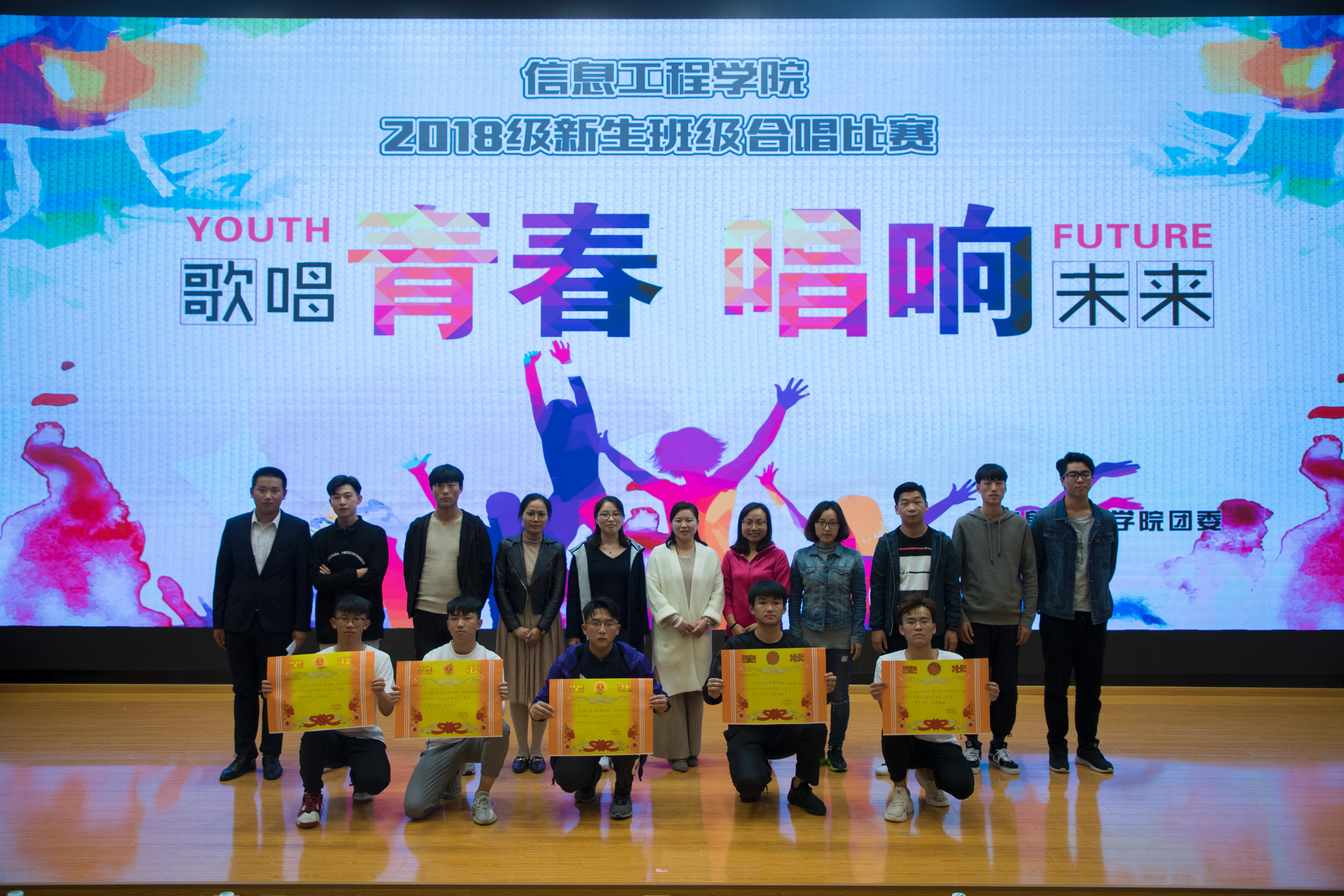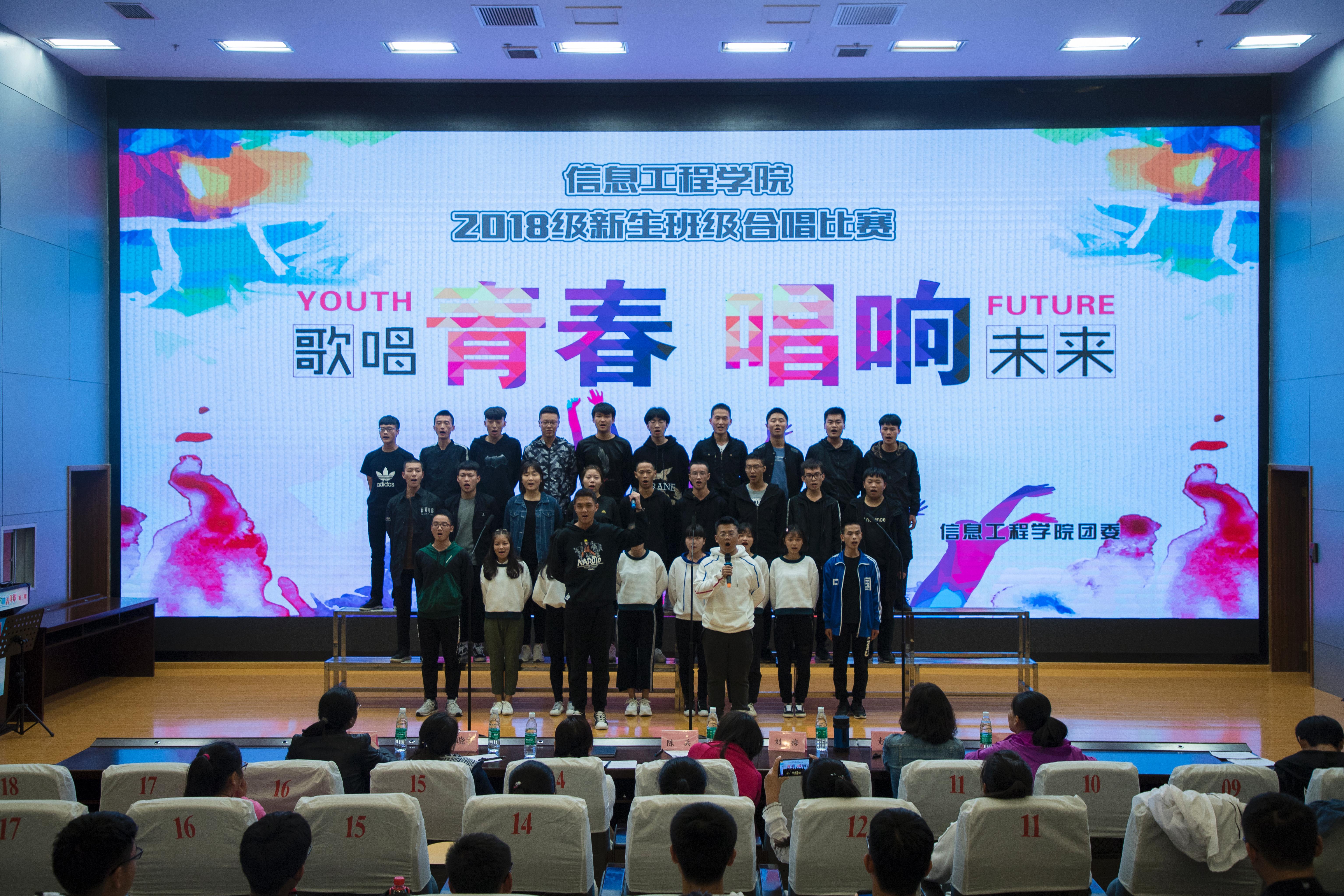 在图书馆报告厅举行了“歌唱青春,唱响未来”2018级新生班级大合唱比赛。比赛特邀校外音乐专业老师张燕担任评委,党总支副书记陈兵、新生班主任以及学工办老师共同参加了本次比赛。
