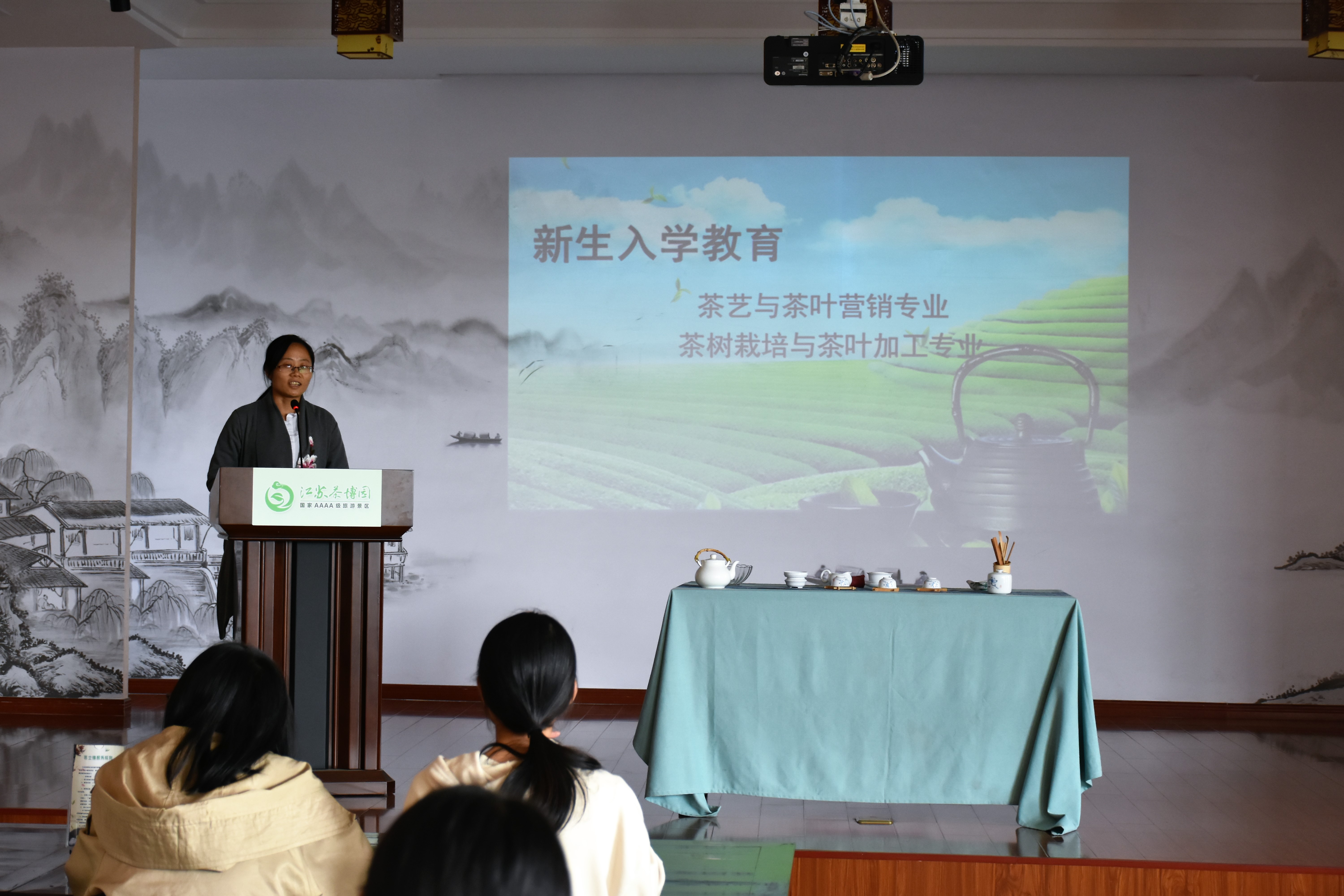 王润贤书记作为18茶树栽培与茶叶加工的班主任,在新生专业教育会上与同学们分享了自己的学茶历程,以及从教三十余年来工作经验,引导学生要做好学业和职业规划,最后讲到学一行爱一行,技能是无数次“劳动”的积累,以“和”为贵,与大家共勉。