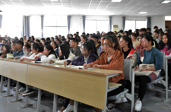 10月31日下午,茅山校区邀请院工会江德明主席为校区全体学生干部上了一堂“如何做好一名称职的学生干部”的培训课。 江主席主要围绕着坚定信念、守信为先、立身做人和正确处理好四大关系为同学进行讲解,并结合历史和国情介绍了很多党的政策和方针,强调学生干部应端正自己的态度,提高自身的品行和素养,增强同学间的凝聚力,充分发掘自身潜力,为班级同学做好榜样。