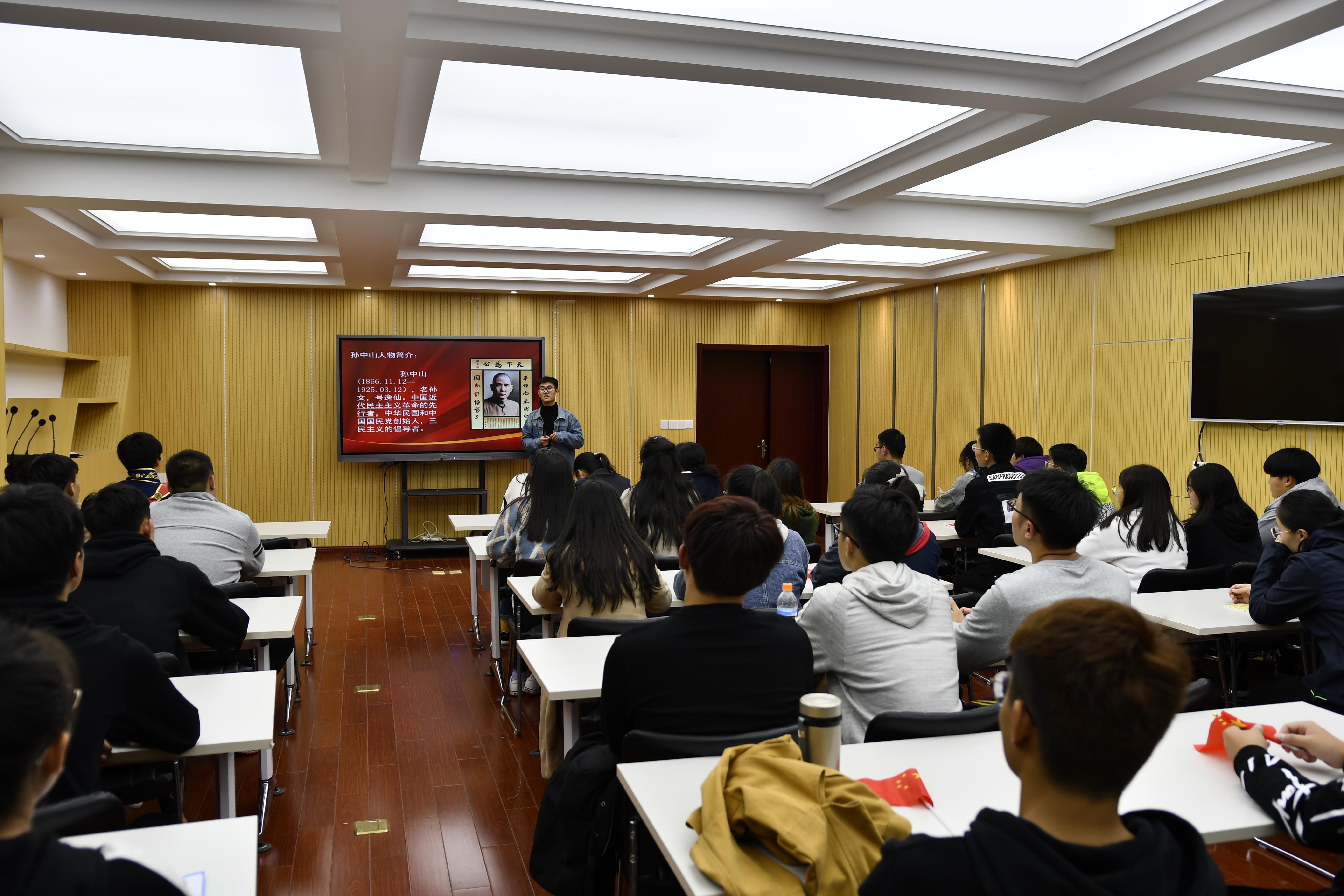 活动中,主持人通过PPT演讲的形式,带领大家回忆了孙中山先生的生平事迹,随后组织同学们一同观看了纪录片《辛亥革命》,深入感受孙中山先生如何在那峥嵘岁月中,为民族独立、社会进步、人民幸福所付出的努力。影片结束,现场同学互相交流讨论,深切缅怀中山先生的不朽业绩。最后同学们朗诵了《六州歌头·缅怀孙中山》,表达对孙中山先生深深的敬意与怀念。