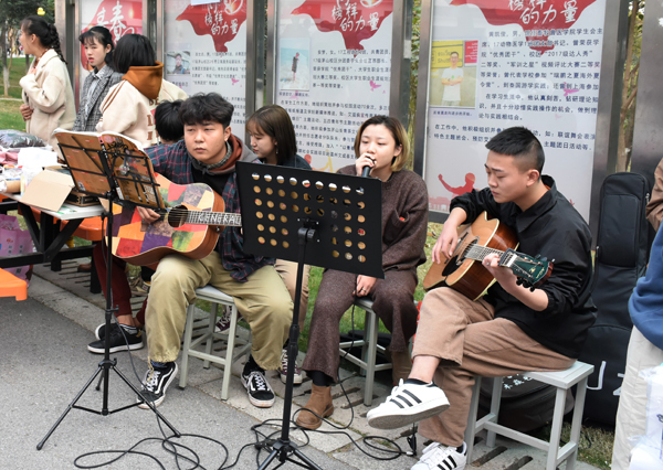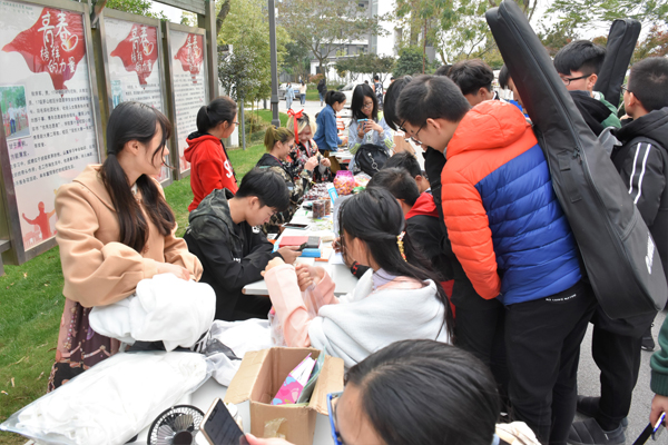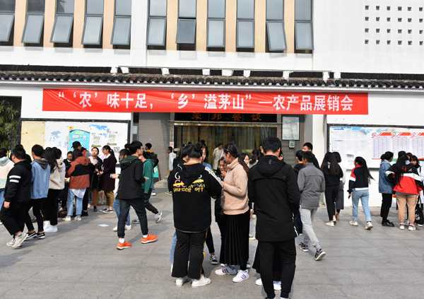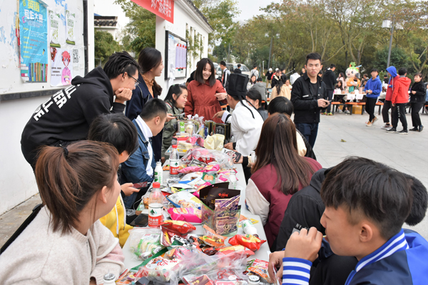 11月14日,由茅山校区分团委主办的大学生农产品展销会暨校区第二届校园跳蚤市场在食堂门口火热开展。 农产品展销会的开市成为了校区的一道亮丽的风景线,本次活动共有三十多个摊位参加,参与人数达1000余人。农产品展销会上设置了各个省、市、自治区的特产专区、二手商品转卖专区,同学们在校园内就可以购买到全国各地的特产以及日常生活用品。