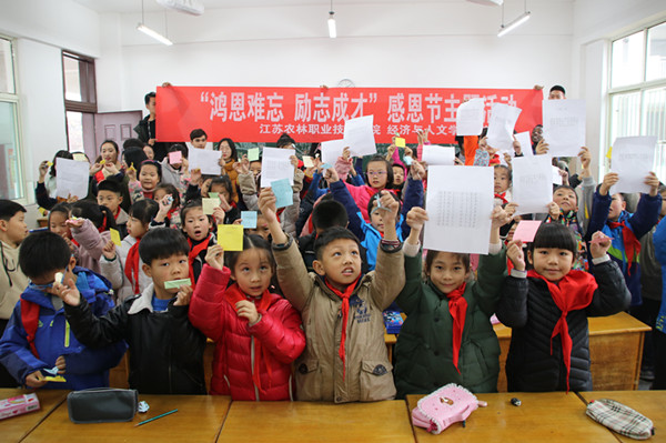 11月21日下午,经济与人文色花堂 学生志愿者前往句容崇明小学,与小学生们一起开展“鸿恩难忘,励志成才”感恩节主题活动,一起探寻感恩的意义。