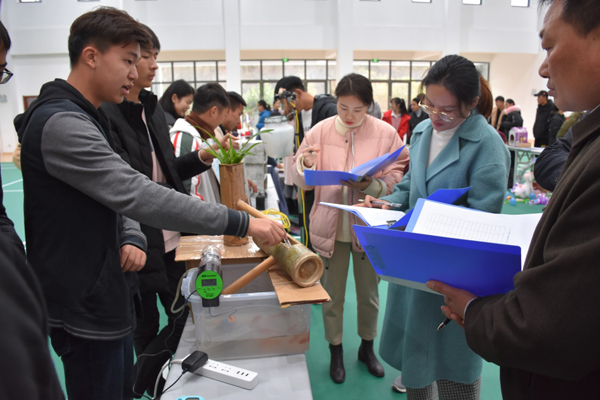 12月10日,茅山校区举办了第二届创新创意大赛,本次大赛以“创青春 新时代”为主题。 通过前期准备和策划,本次大赛共收集作品33件,在校区体育馆展出。评审现场,有创造发明的电子产品、有生动实用的机械产品、有充满文化底蕴的茶艺作品,有奇思妙想的手工创作。最终《可伸缩电动摘果器》、《一种光源自动追踪的太阳能发电装置》、《生态鱼缸·水冷系统》三个作品荣获本次大赛一等奖。