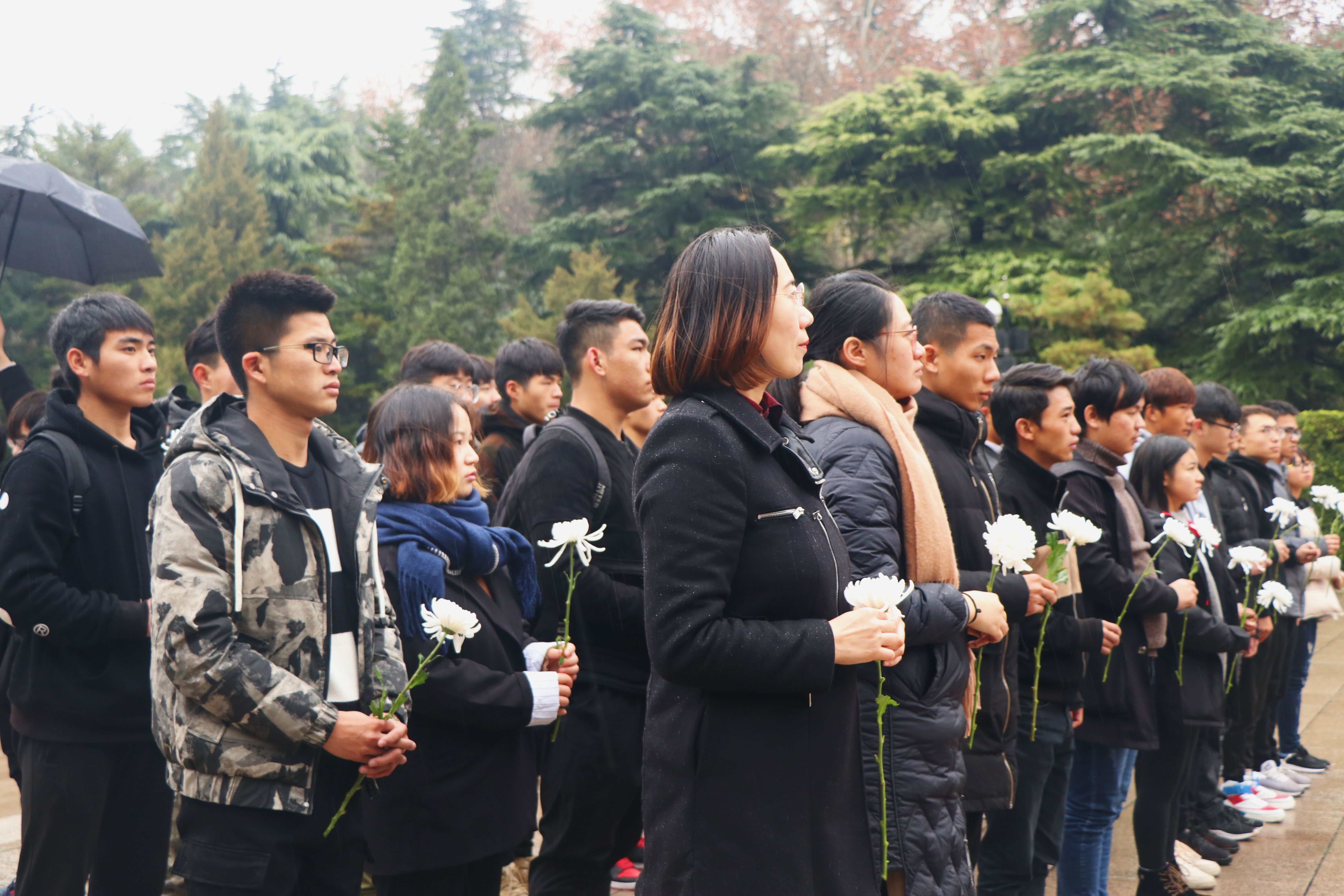 组织学生代表赴南京雨花台烈士陵园,开展“勿忘山河血追思中华灵”祭奠活动。纪念仪式在雨花台烈士群雕像广场举行,师生们在淅沥冬雨中肃穆静立,奏唱国歌,默哀悼念。18级新生代表发言中以青年之志,立下不忘国耻、成才报国之誓。该院李杨副书记也勉励广大学子,承革命先辈遗志,为实现中华民族伟大复兴而努力拼搏。随后师生们向雨花台革命烈士和在南京大屠杀中不幸遇难的同胞们敬献了鲜花,还共同观摩了“信仰的力量”雨花台革命烈士主题展览。
