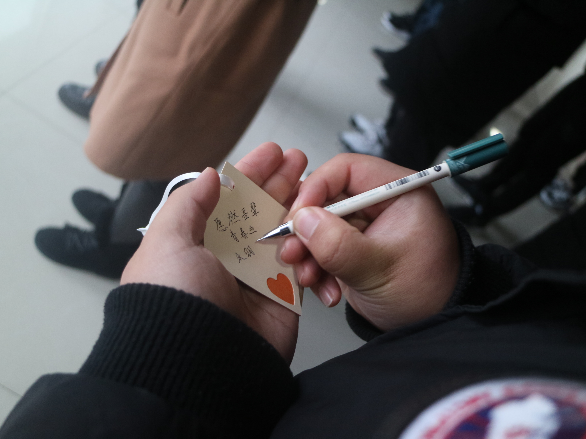 在研发楼一楼举办了“卡片寄语寄人思”主题活动。同学们有序地献上白花表达对逝者的敬意。党员示范岗的同学向大家介绍了图片展上照片背后的故事,带领同学们回顾那一段腥风血雨的历史,悲恸的情绪让大家拿起笔在卡片上写下对过去的缅怀和对未来的期望,最后大家举起右手庄严宣誓。