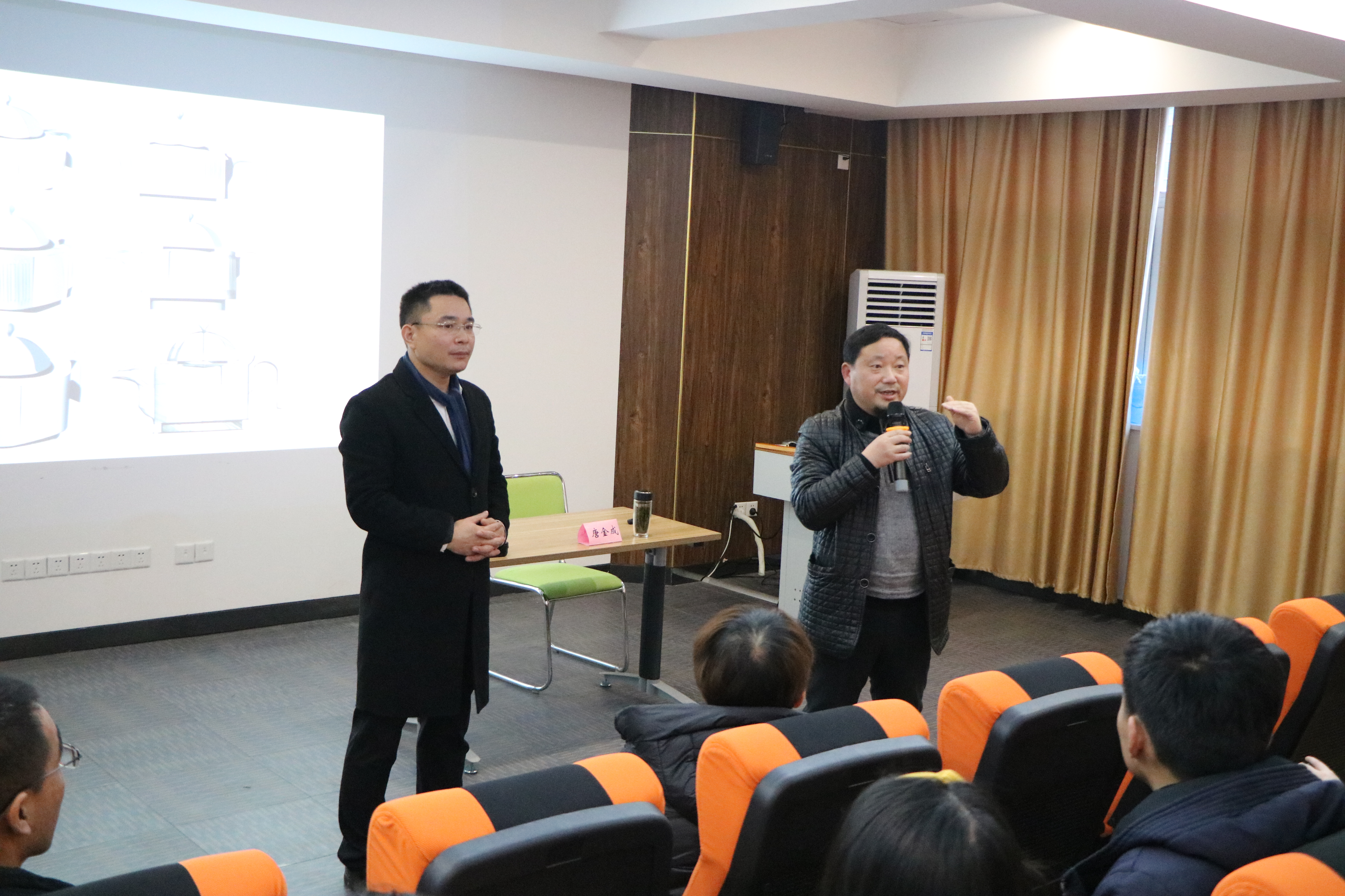 温为才老师分析了历年来获得美国工业设计IDEA奖的作品,分享、解读了自己的葵叶灯、碉楼生铁壶等设计作品。他指导学生文创作品必须要与市场有一定的差异性、独特性,更需要对物质文化的深入挖掘,进行符号化和抽象化,让消费者体验、感受到蕴含其中的文化内涵。唐金成老师则以句容为例,从历史传承、地理位置、人口迁徙三方面解读乡土文化,鼓励同学们从民俗风情、古建遗存、农家特色、传统技艺等深度挖掘其文化的艺术和精髓。