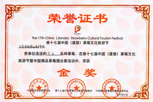 我院草莓综合示范基地生产的红颜、宁玉等两个草莓品种参加全国精品草莓擂台赛,在来自全国65个品种、700余份样品中斩获两个奖项,其中选送的宁玉品种在精品草莓擂台赛活动中荣获金奖,红颜获得银奖。