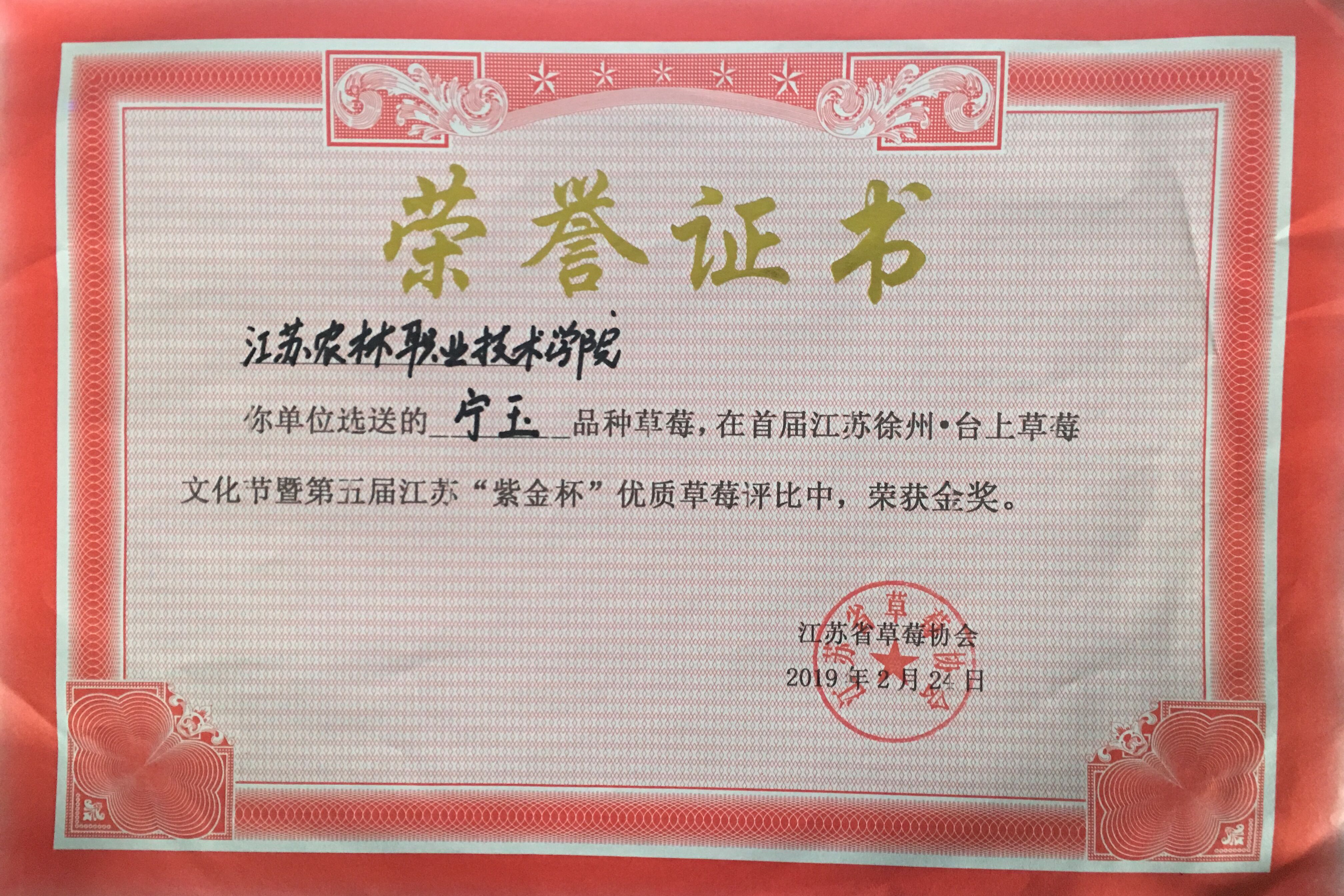 农学园艺色花堂 草莓综合示范基地生产的红颜、宁玉和桃熏等三个草莓品种参加优质草莓评比大赛,共斩获三个奖项,其中宁玉品种在“紫金杯”优质草莓评比中荣获金奖,红颜和桃熏获得银奖。