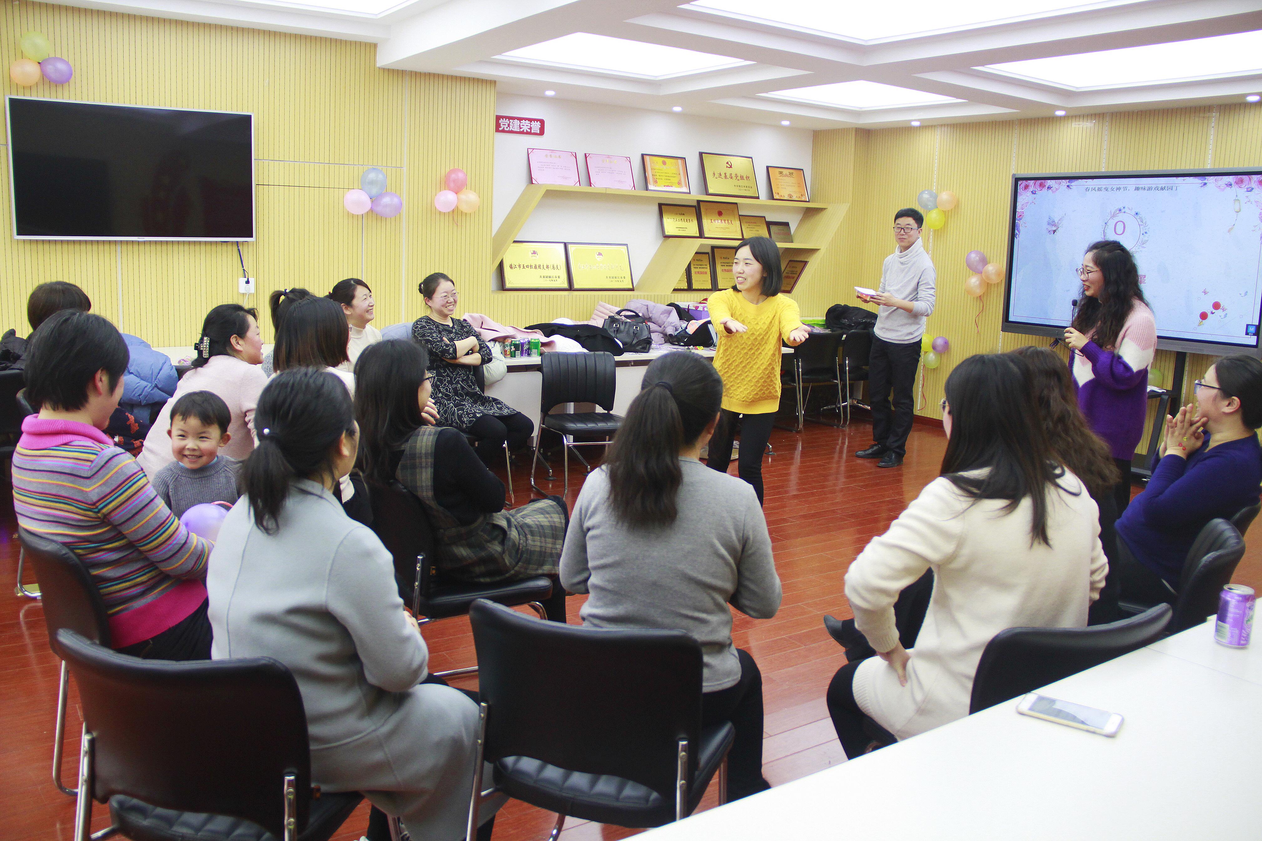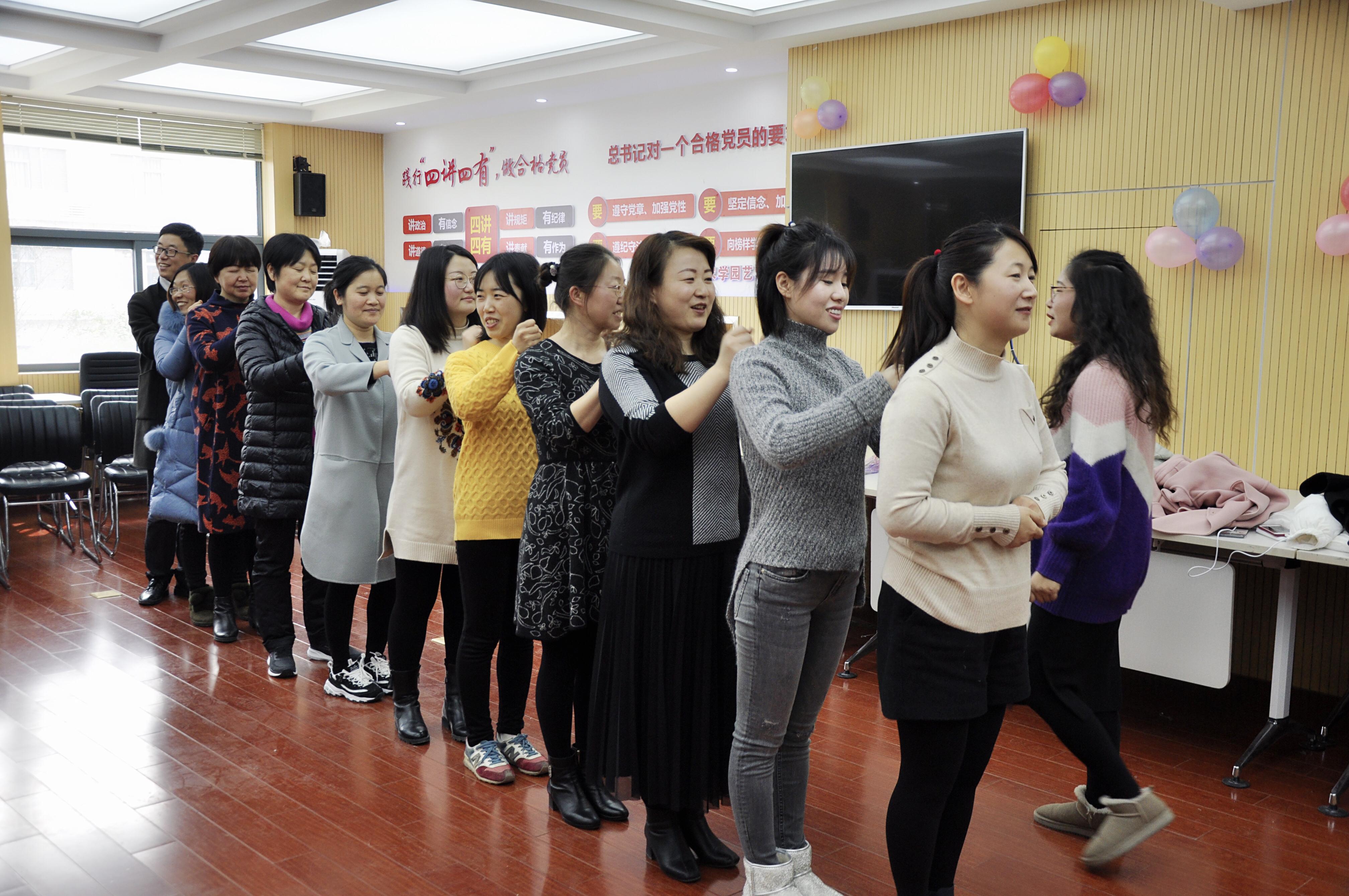 活动中,分工会主席杨宝林表达了对妇女同仁的节日祝福。随后,黄帅老师联系教师日常工作生活,从放松心情入手,通过“轻柔体操”、“眼疾手快”、“快乐猜拳”、“心有灵犀”、“快乐推推乐”等趣味活动,让参与活动的女同胞们缓解工作压力、放松紧张心情。活动最后,大家围坐在一起共吃“女神节”蛋糕,在欢声笑语中度过一个难忘而又有意义的“三八”节。