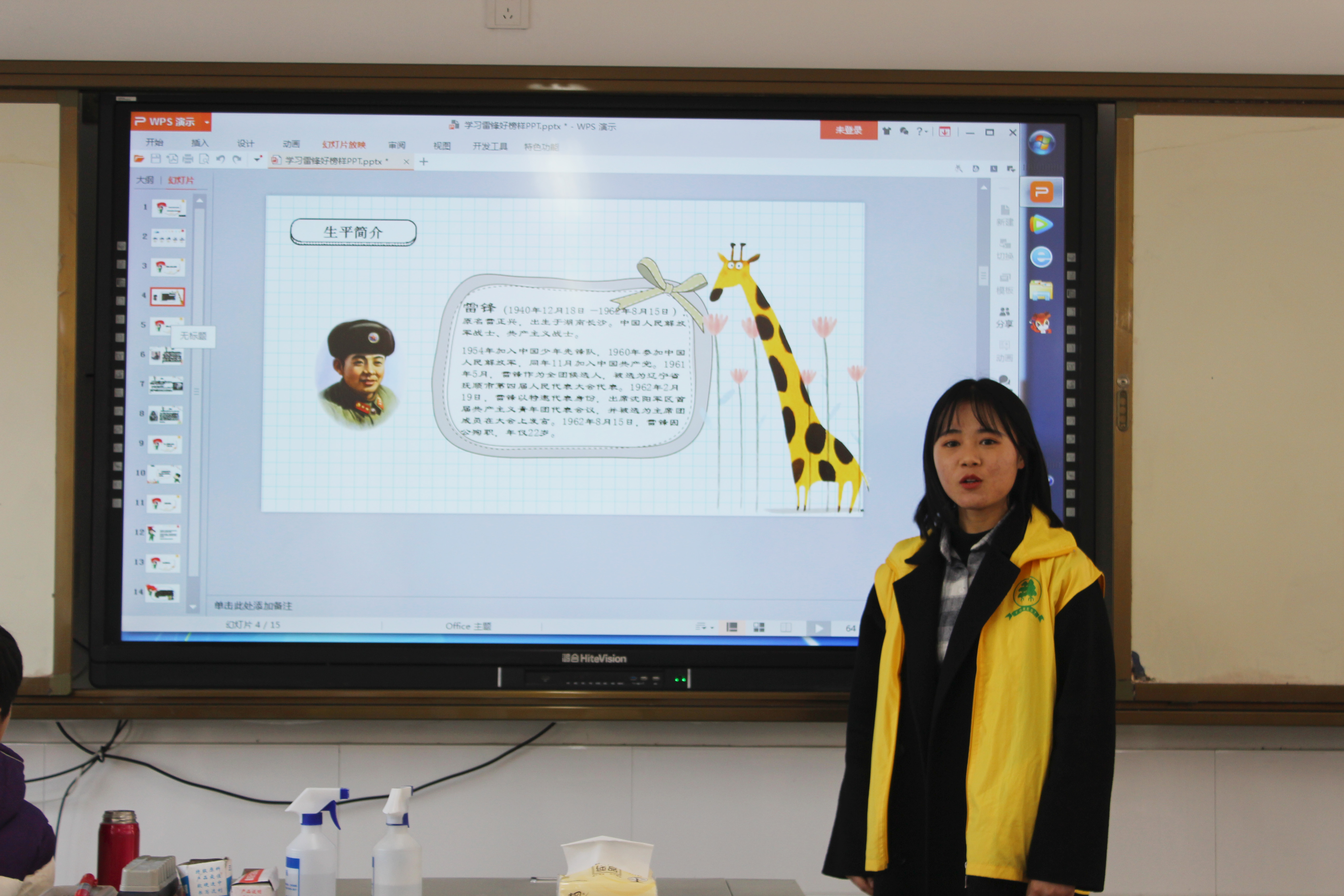 志愿者们用生动形象的语言向大家介绍了雷锋的先进事迹,当同学们了解了雷锋从出生到学生时代的经历以及他励志参军直至牺牲的光荣事迹之后,都被这位英雄叔叔感动了;接着,大家写下了想对雷锋叔叔说的话并高声合唱《我们是共产主义接班人》,立志要用实际行动向雷锋同志学习、向雷锋同志看齐。