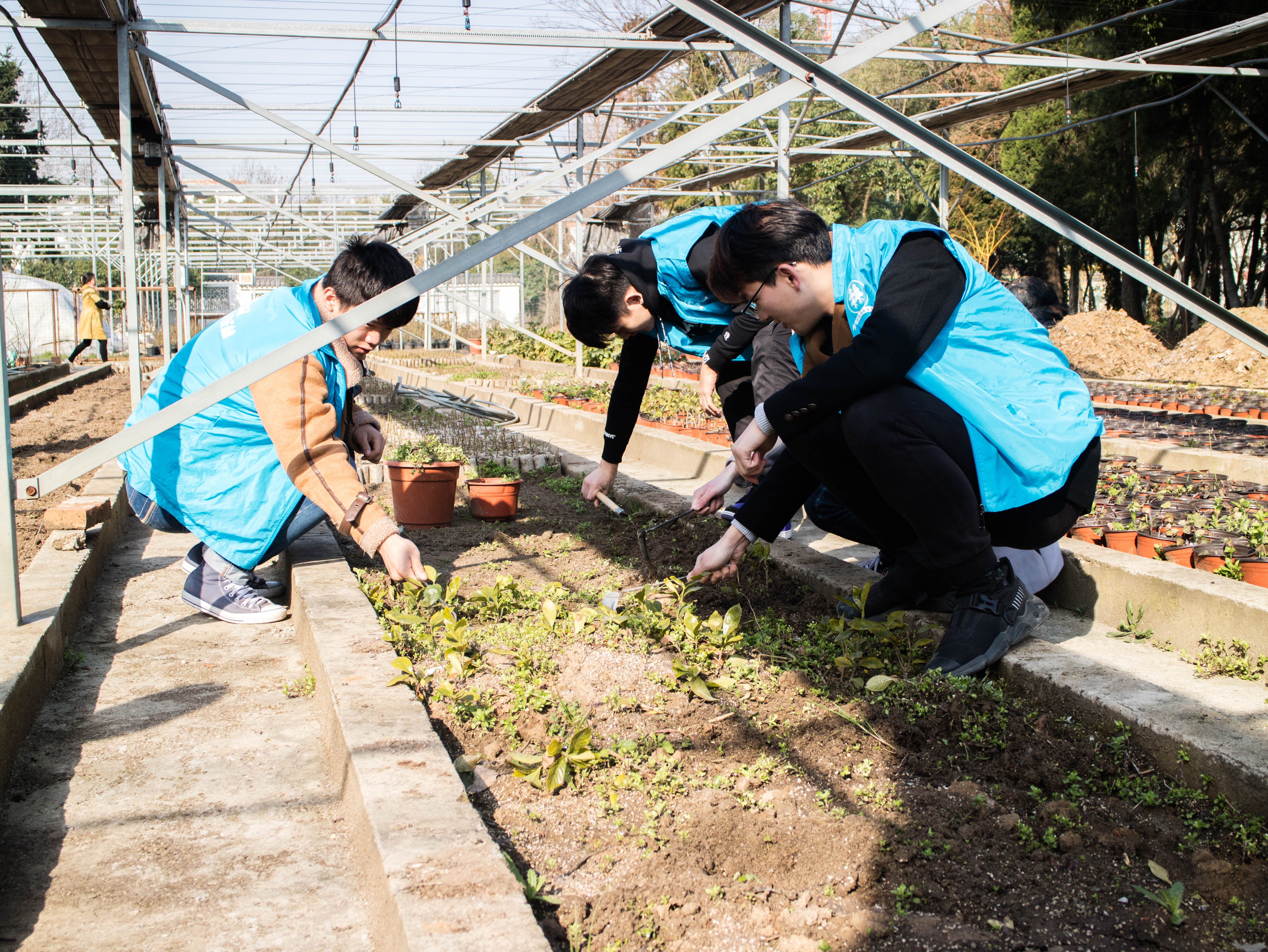 3月12日,志愿者们自发组织队伍来到南校区,协助基地工人完成了苗木的扦插、松土、除草工作及树木园的树枝修剪工作,体会到了耕种的不易和成就感。