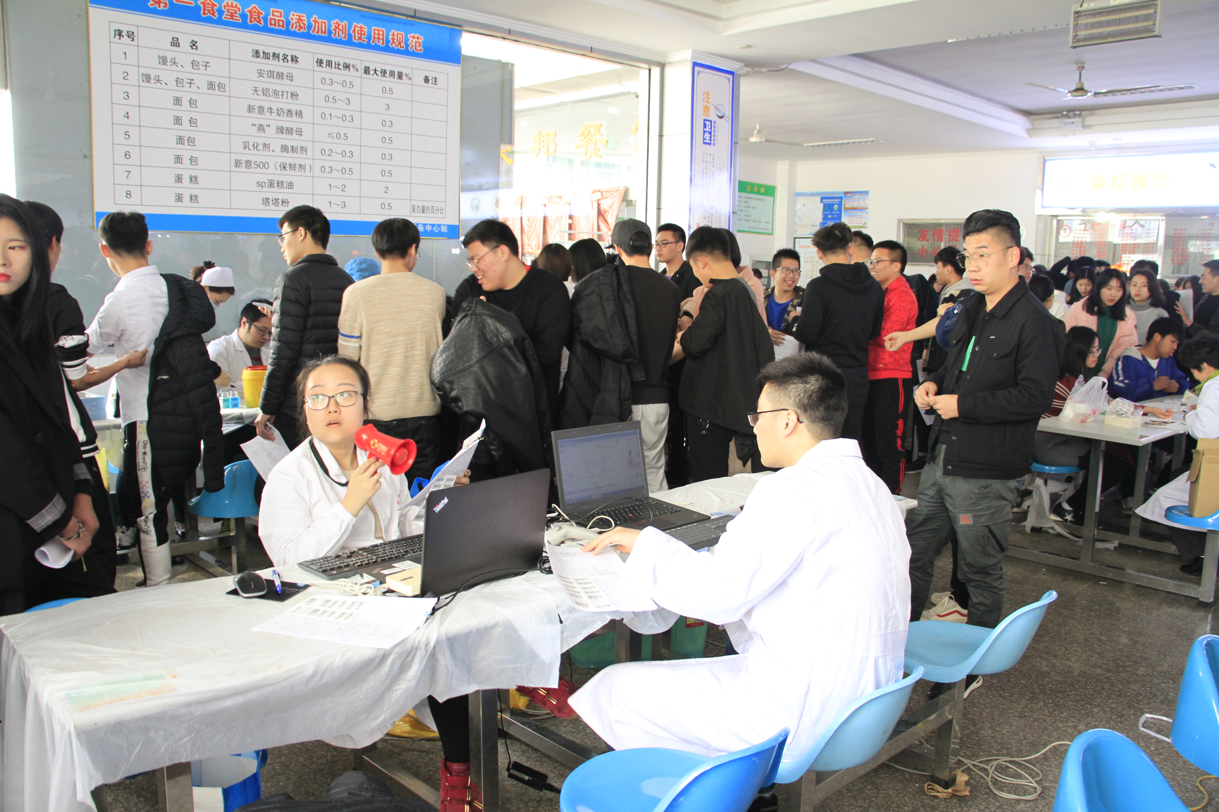 3月13日,由镇江市中心血站句容采储血点和学生工作处共同组织的“浓情热血献祖国 学习雷锋谱新篇”无偿献血活动在我院南校区师生食堂门口拉开帷幕,掀起了一场无偿献血的爱心热潮。