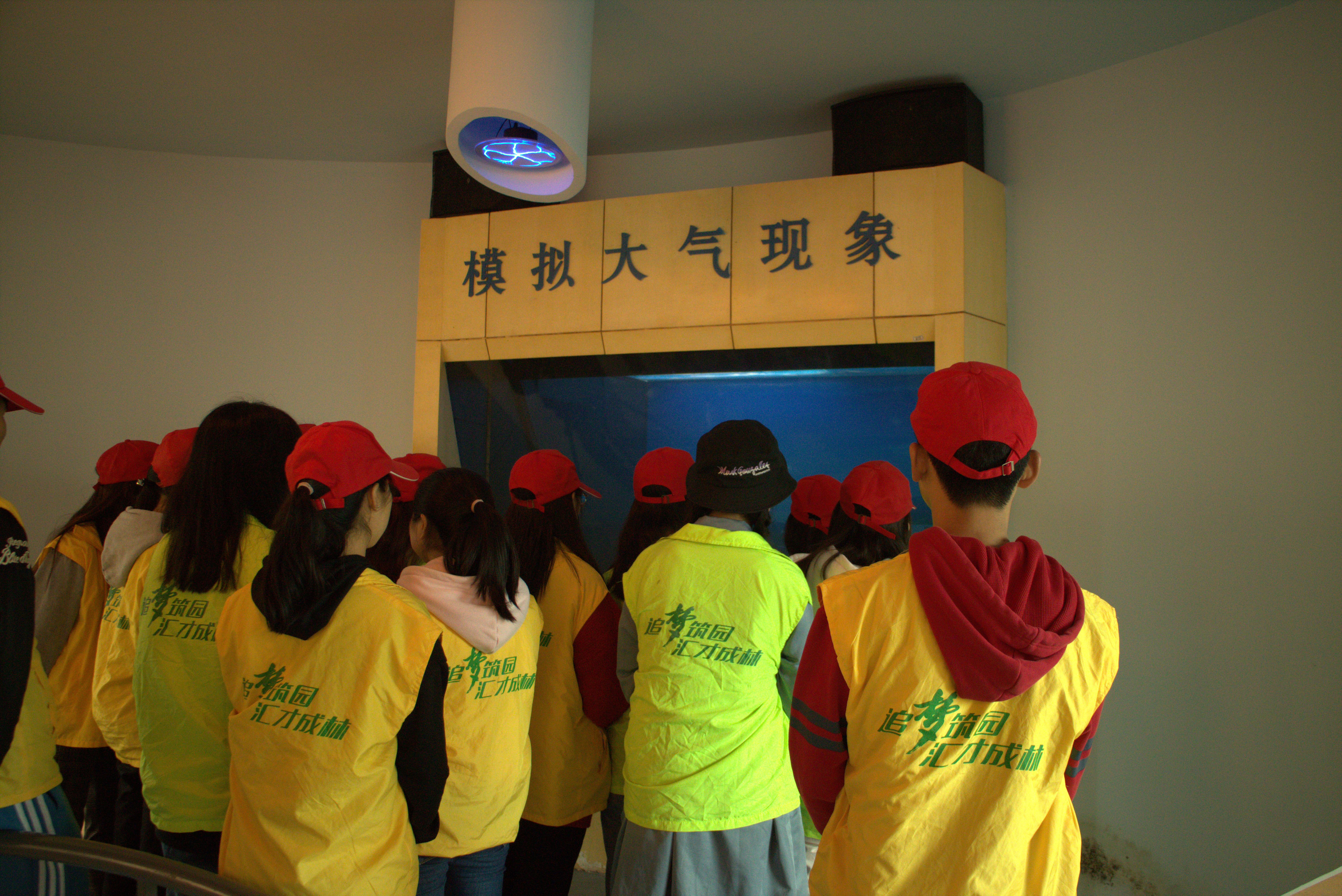 志愿者们来到句容市气象局进行实地观摩学习,气象局的工作人员带领学生志愿者走进科普室,观看了雷电模拟、静电发生器、大气环流等气象模拟装置;实地参观了气象观测站,在工作人员的解说下初步了解如何观测风向,学习使用降水现象仪、自动气象站仪器。