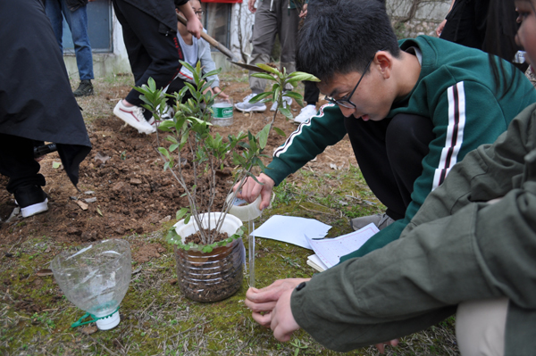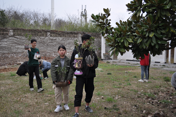 活动中,志愿者组织同学们有序领取栽种的花苗,随后,将花苗栽种到自己亲手用废弃物制作成的花瓶中。活动过程中,同学们互帮互助,挖土、种苗、浇水,在大家共同努力下为校园制作了一批创意盆栽。
