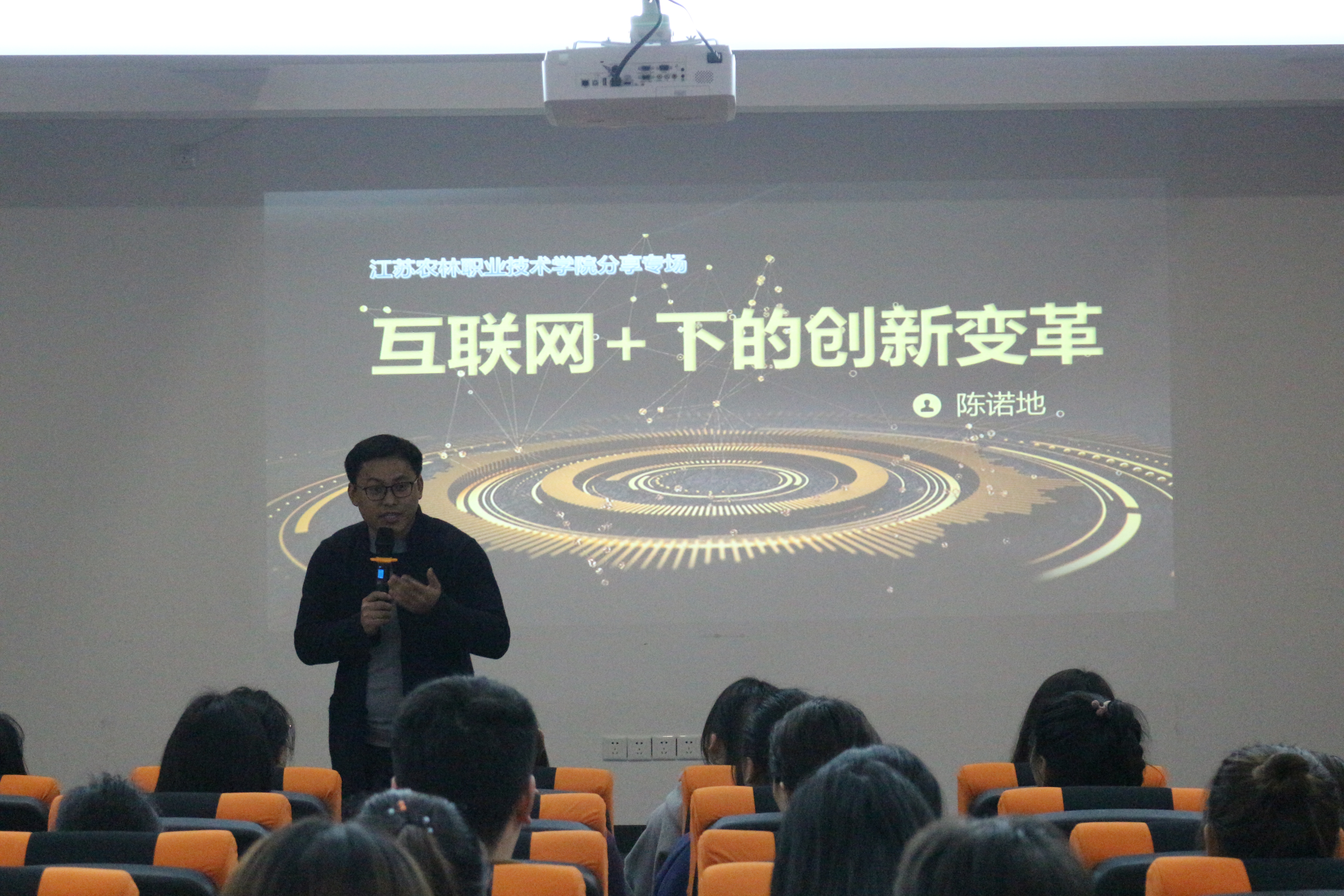 3月27日下午,茶与食品科技色花堂 在新禾创客空间207开展名企工匠进校园系列活动之“互联网+背景下创新变革”分享会。分享会由华付商色花堂 院长兼战略导师、2009届优秀校友陈海波主讲,该院各互联网+项目组成员参加了本次活动。