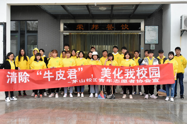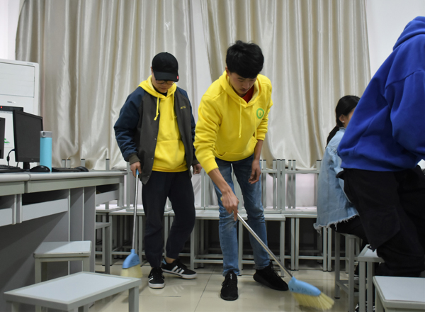 为保持校园的清洁卫生,3月27日下午,茅山校区青年志愿者协会开展美化校园活动,志愿者们对校园内机房、楼道、公告栏等位置进行了全面清扫。
