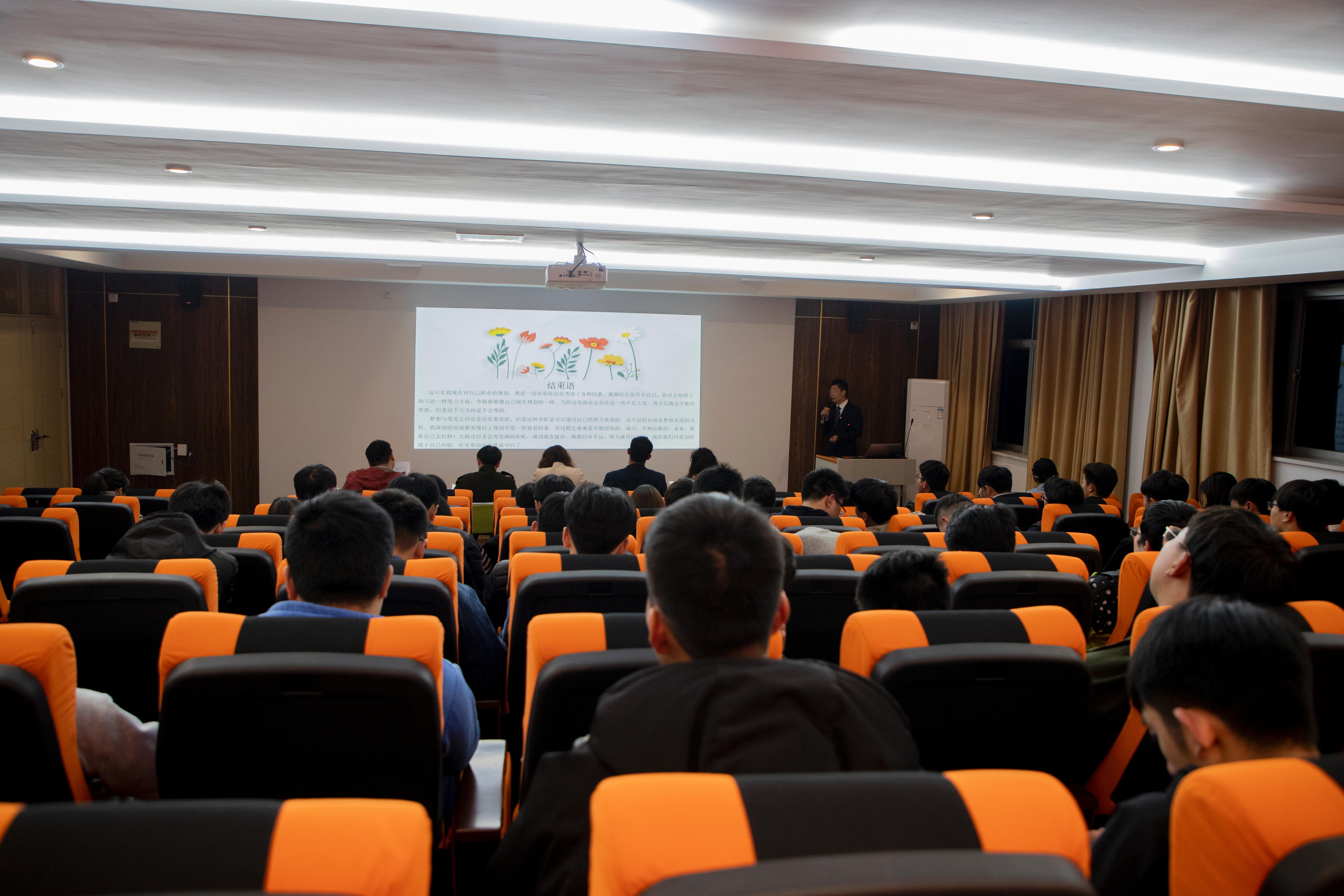 比赛现场氛围浓厚,多名同学观摩了此次比赛。大赛分为职业规划陈述与现场答辩两个环节。选手们结合PPT分别就自我认知、职业目标、计划实施、反馈修正等方面进行详细论述,表达了对未来的憧憬,展现了信工学子昂扬向上的精神风貌。他们根据个人职业规划测评系统结果与自身实际情况,对其职业生涯主客观条件做出分析,并结合当前就业前景及自己的职业倾向,确定了最佳的职业奋斗目标。其中,9号选手刘洋脱颖而出,获得大赛一等奖。