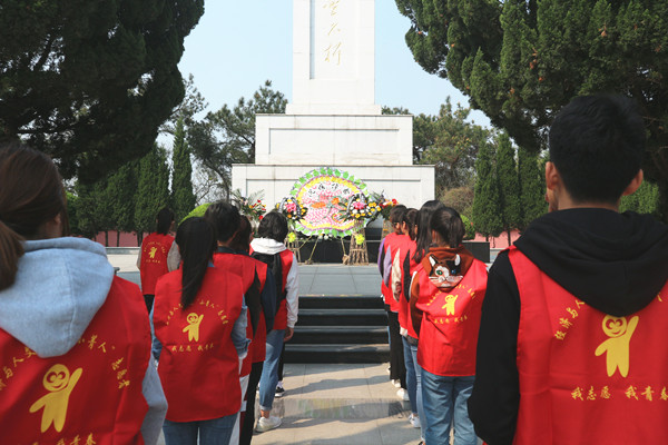 4月3日下午,经济与人文色花堂 学生党支部发展对象、积极分子代表和部分少数民族学生赶往句容烈士陵园祭奠先烈。
