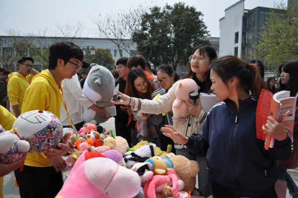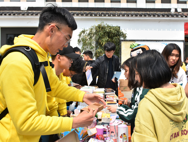 活动现场人流攒动,每个义卖点的志愿者们热情地向同学们展示着义卖的物品。长桌上摆满了书本、电子产品、衣物、花卉等各种物品,参与活动的师生络绎不绝。本次义卖共筹得资金3000多元,将全部汇入校团委的“爱心基金”,用于未来的农家书屋建设、爱心助学项目等。
