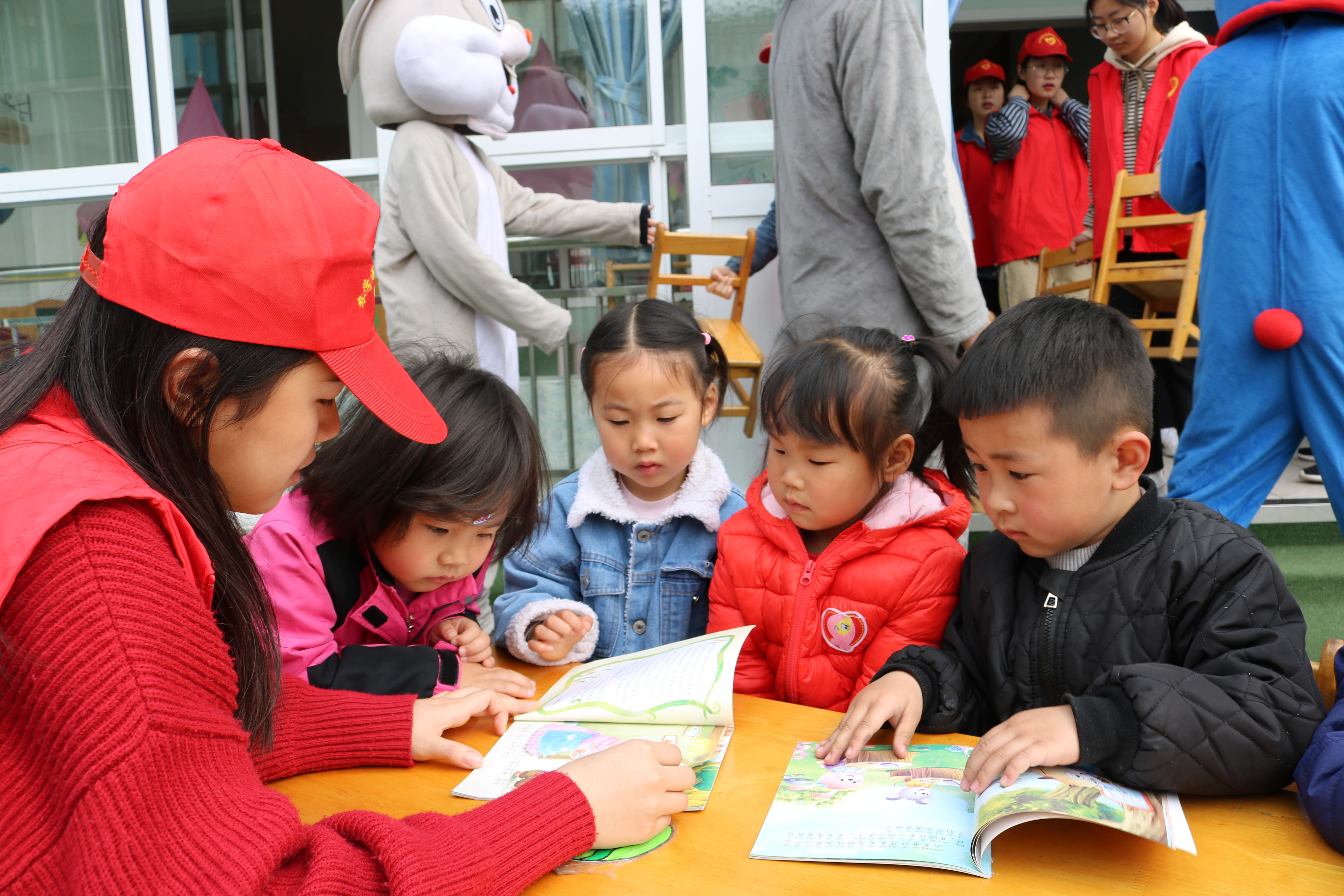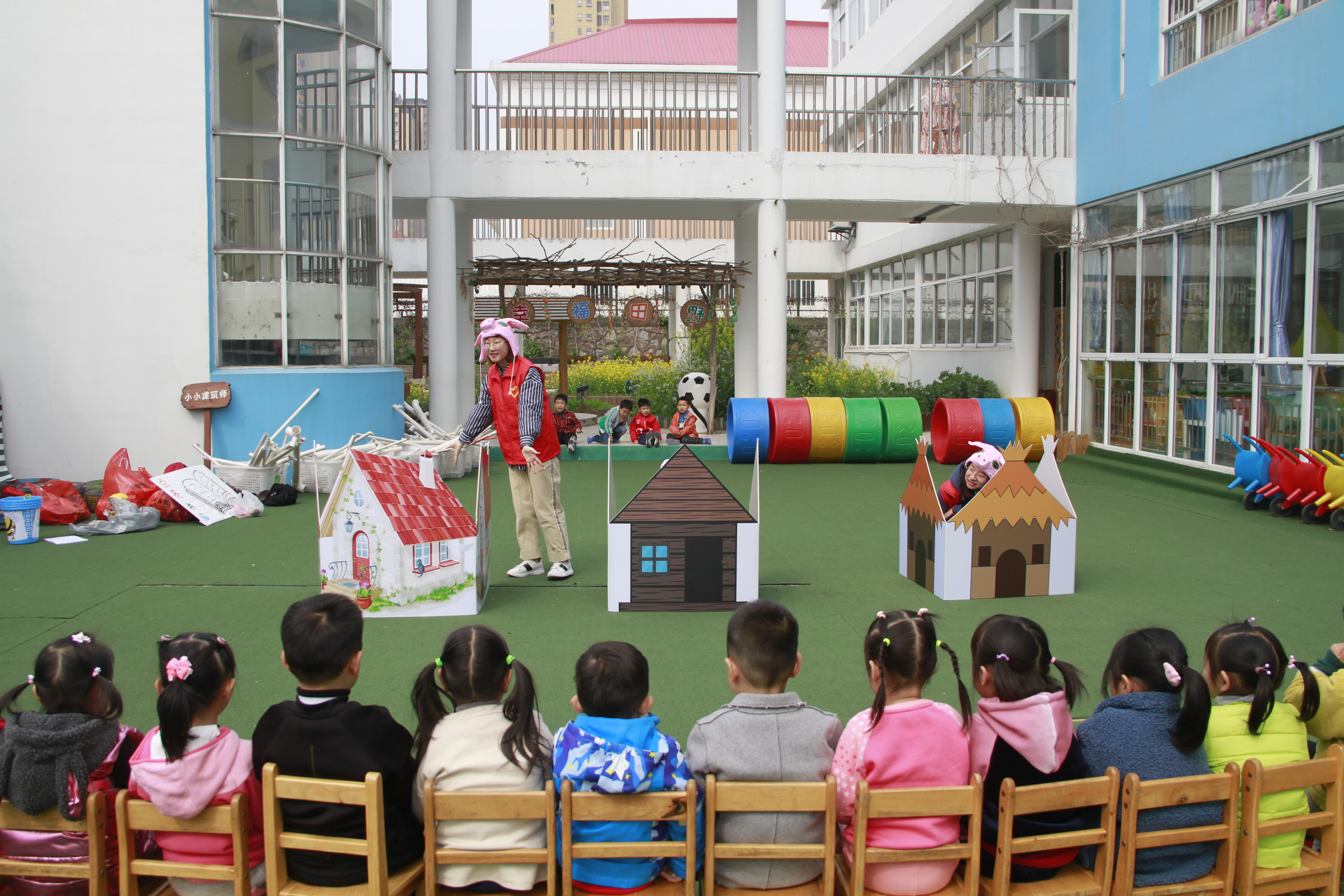 活动中,志愿者们为孩子表演了儿童剧《三只小猪》,给小朋友们讲绘本、童话故事,与小朋友们互动--谈感受,和小朋友一起给小动物涂色……让孩子们在欣赏和阅读中感受读书的乐趣。