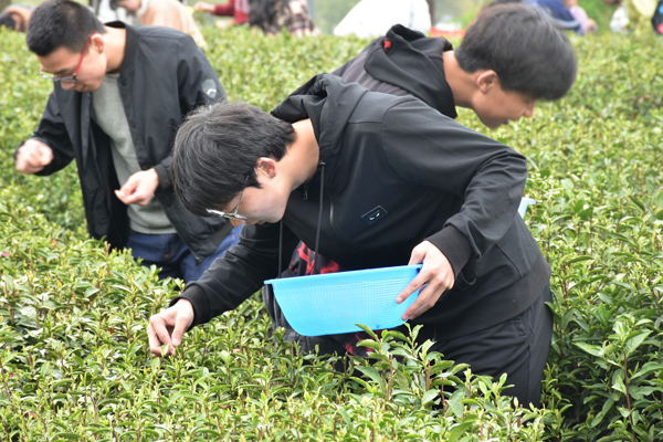 清明节后,正是采茶好时节,4月10日下午2点,茅山校区党总支开展的“悠悠茶叶情 片片蕴茶香”采茶体验活动正式拉开帷幕。此次活动将持续两周,校区党总支全体教师党员、2000余名学生参加。 校区党总支两年来一直坚持校企志愿服务对接,组织校区党员教师、学生来到江苏茶博园义务采茶,充分利用“工学结合”组织茶艺专业学生进行现场指导。活动现场,二十多名党员、上百名学生活跃在茶园里,严格按“一芽一叶”的标准采摘茶叶。女生们心灵手巧,动作轻盈,手到芽落。男生们也不甘示弱,细致而专注。