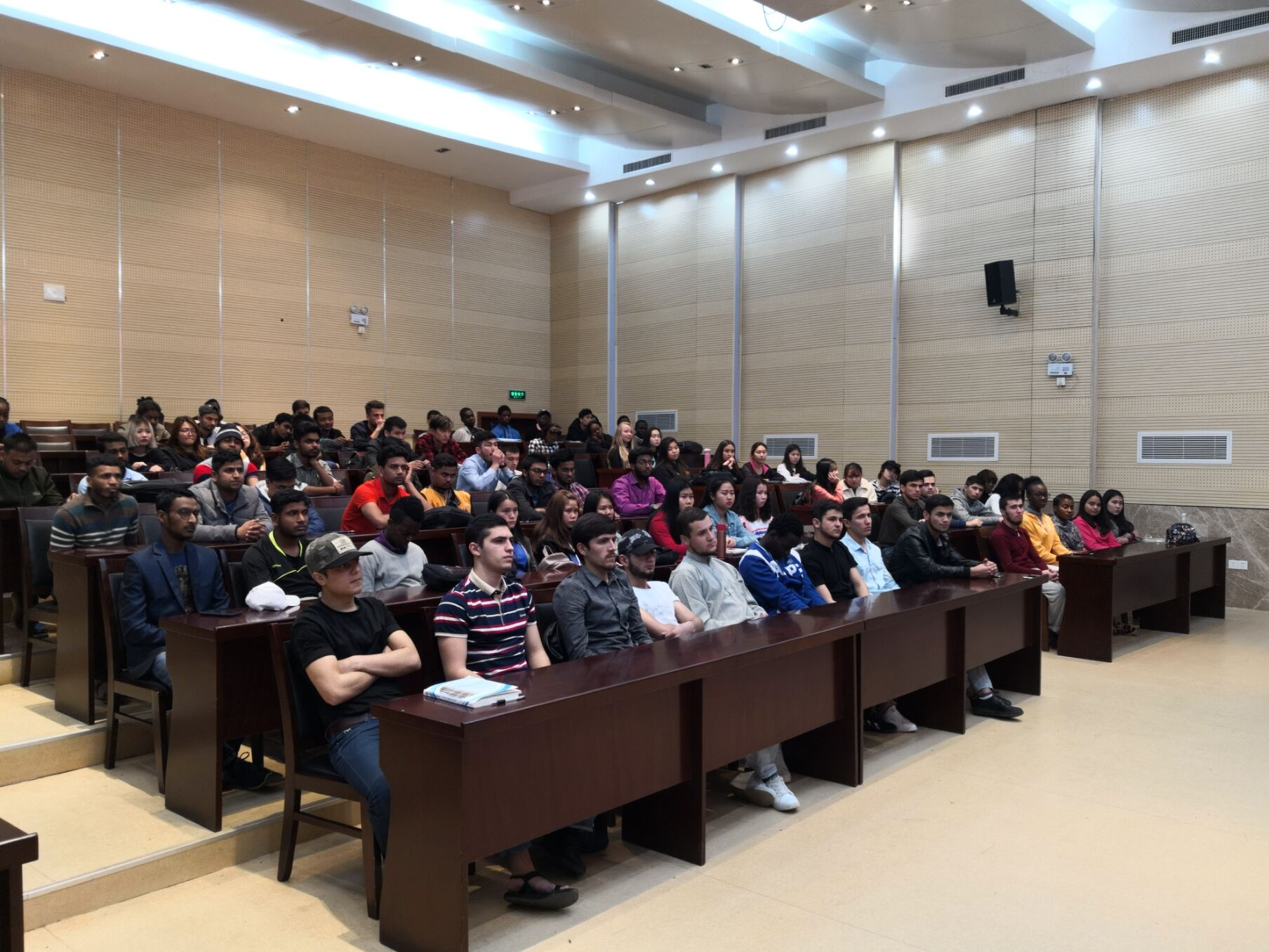 在研发楼报告厅召开了赛前动员大会,该院相关负责同志、全体来华大一留学生参加了此次动员大会。