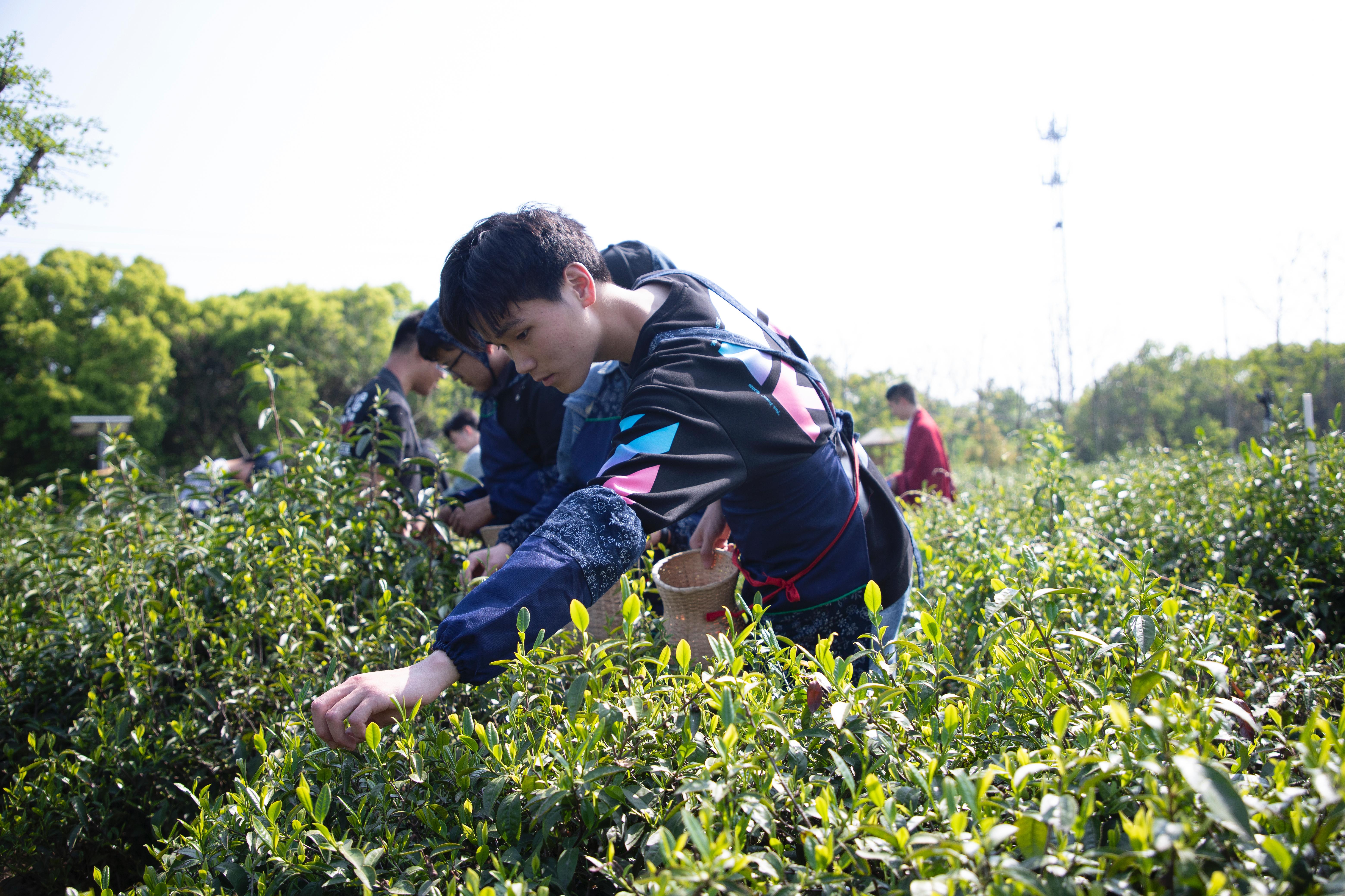 “谷雨润物洗纤素,嫩荚新芽细拨挑”,谷雨是采茶的时节,春梢芽叶肥硕,叶质柔软,滋味鲜活。同学们身穿传统采茶服,走进百茶园,小心挑选,仔细甄别,有模有样,采摘的茶细嫩清香,色泽翠绿,香气怡人。
