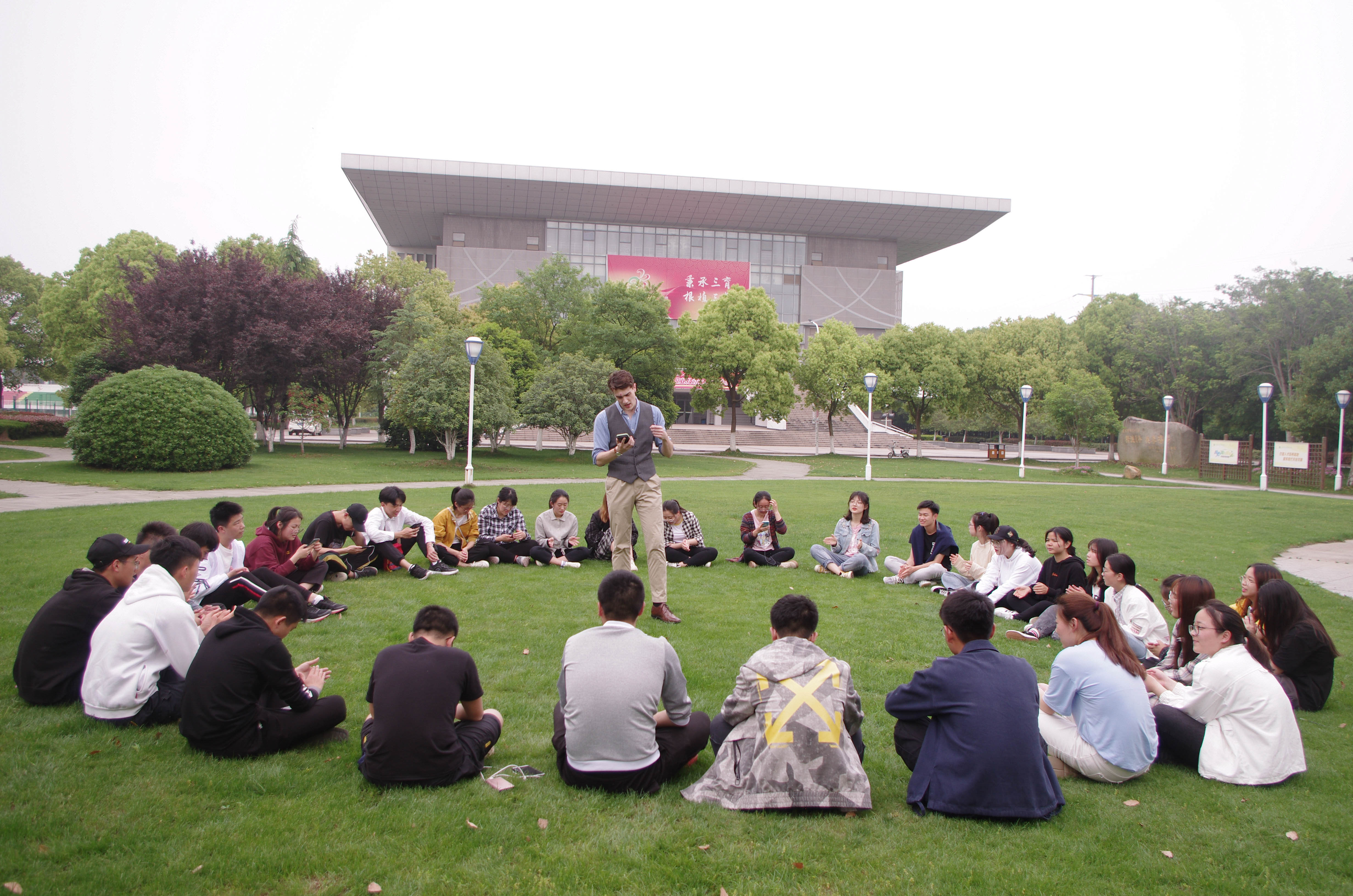 大家围坐在励志广场的草地上热烈讨论着梦想是什么?分享对梦想的认知和理解。随后,大家分成两组进行了拔河比赛。活动最后由来自新西兰的罗大佑带领大家一起学唱和平歌曲——《We are the world》。
