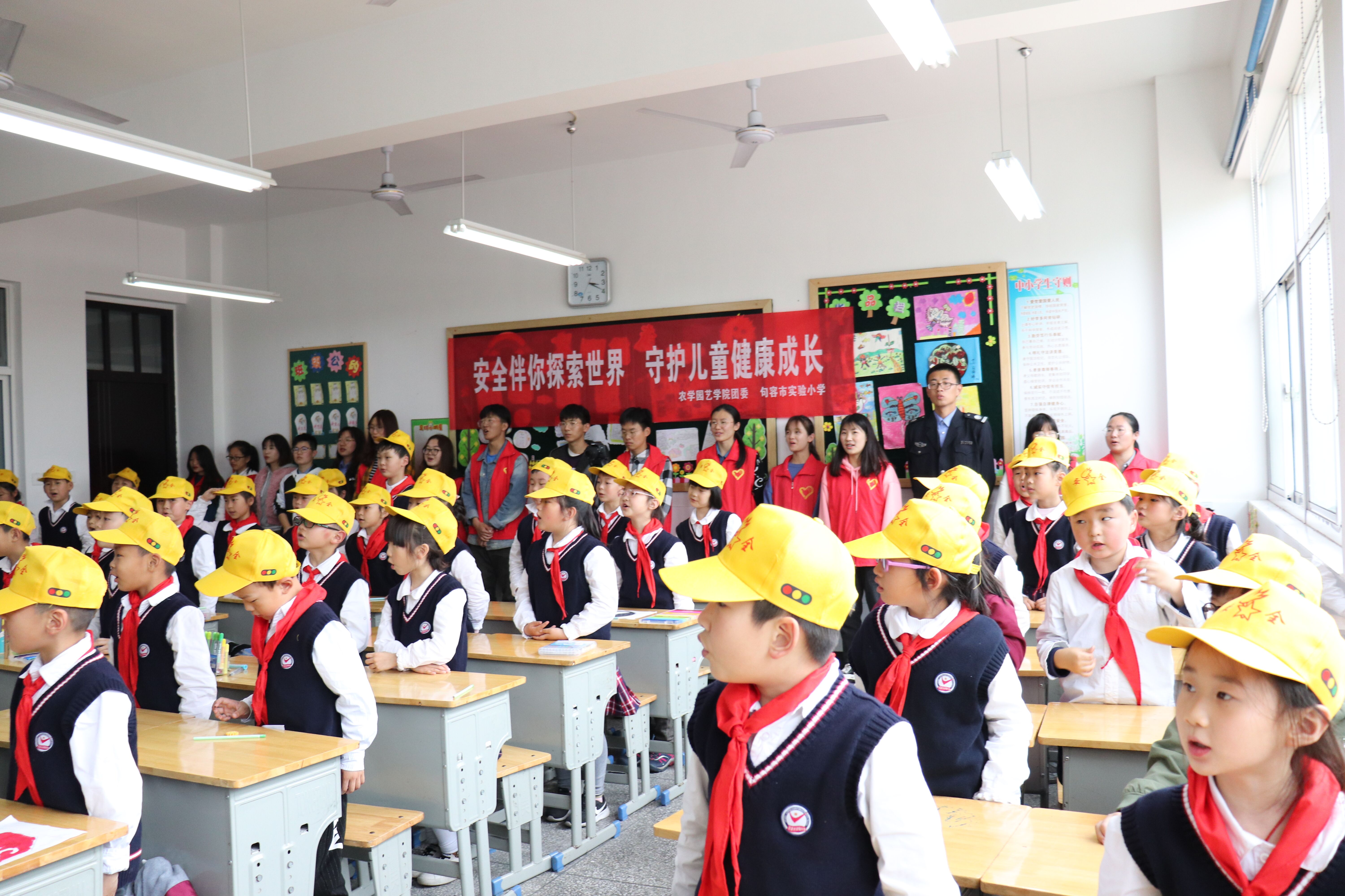 的志愿者们走进句容实验小学,开展了“安全伴你探索世界,守护儿童健康成长”的交通安全反思日主题教育活动。