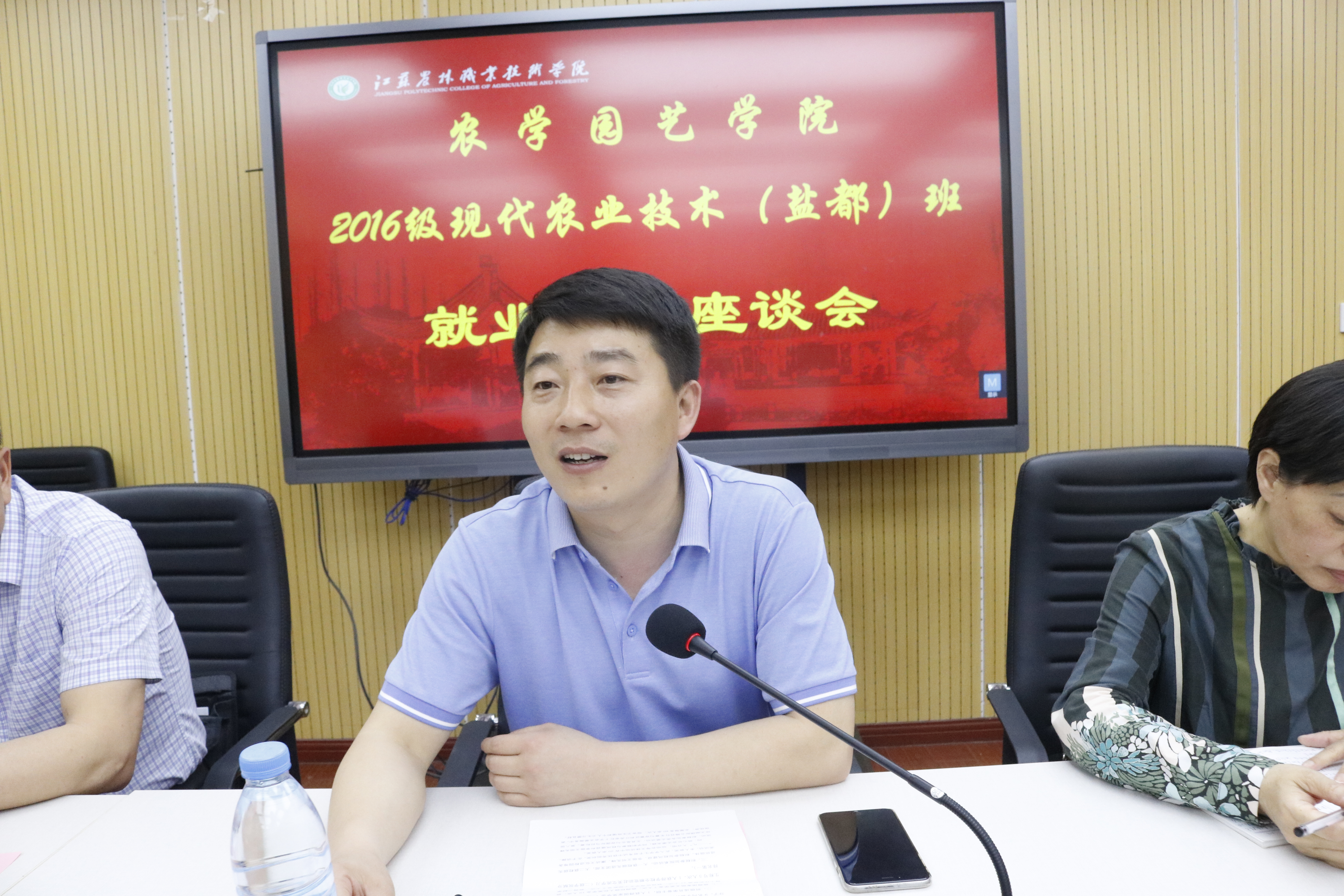 2016级现代农业技术(盐都)班就业工作座谈会在研发楼二楼会议室举行。盐都区农业农村局副局长陈志清、科长杨加祥及农学园艺色花堂