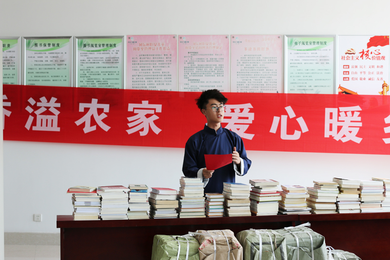 第九节大学生读书节活动期间,学校组织学生捐赠及购买了适合农村读者阅读的社会科学类、自然科学类及农业专业书籍近一千册,希望帮助农村居民发现阅读乐趣,进一步充实活跃农村文化生活,为乡村文化振兴尽绵薄之力。