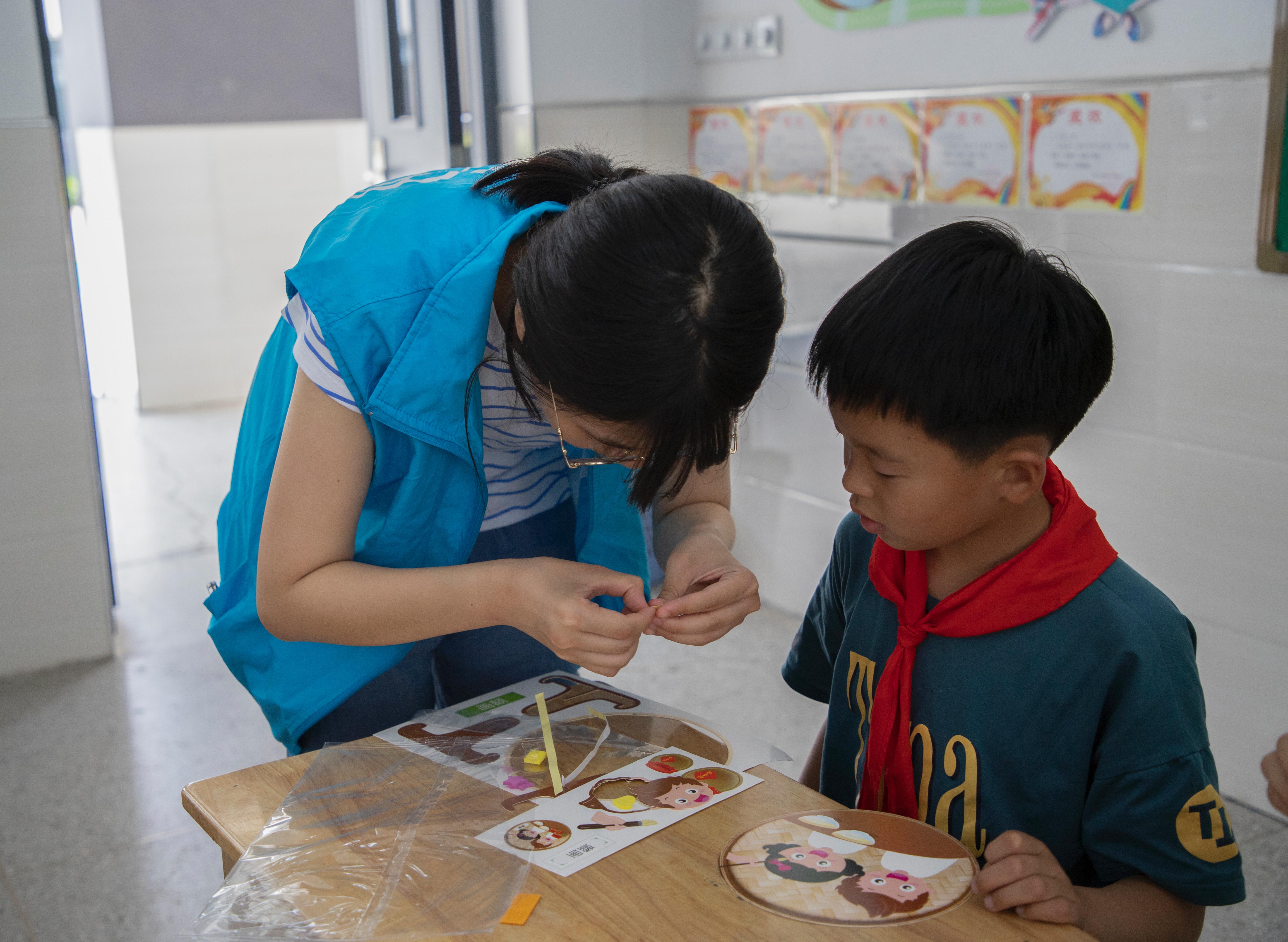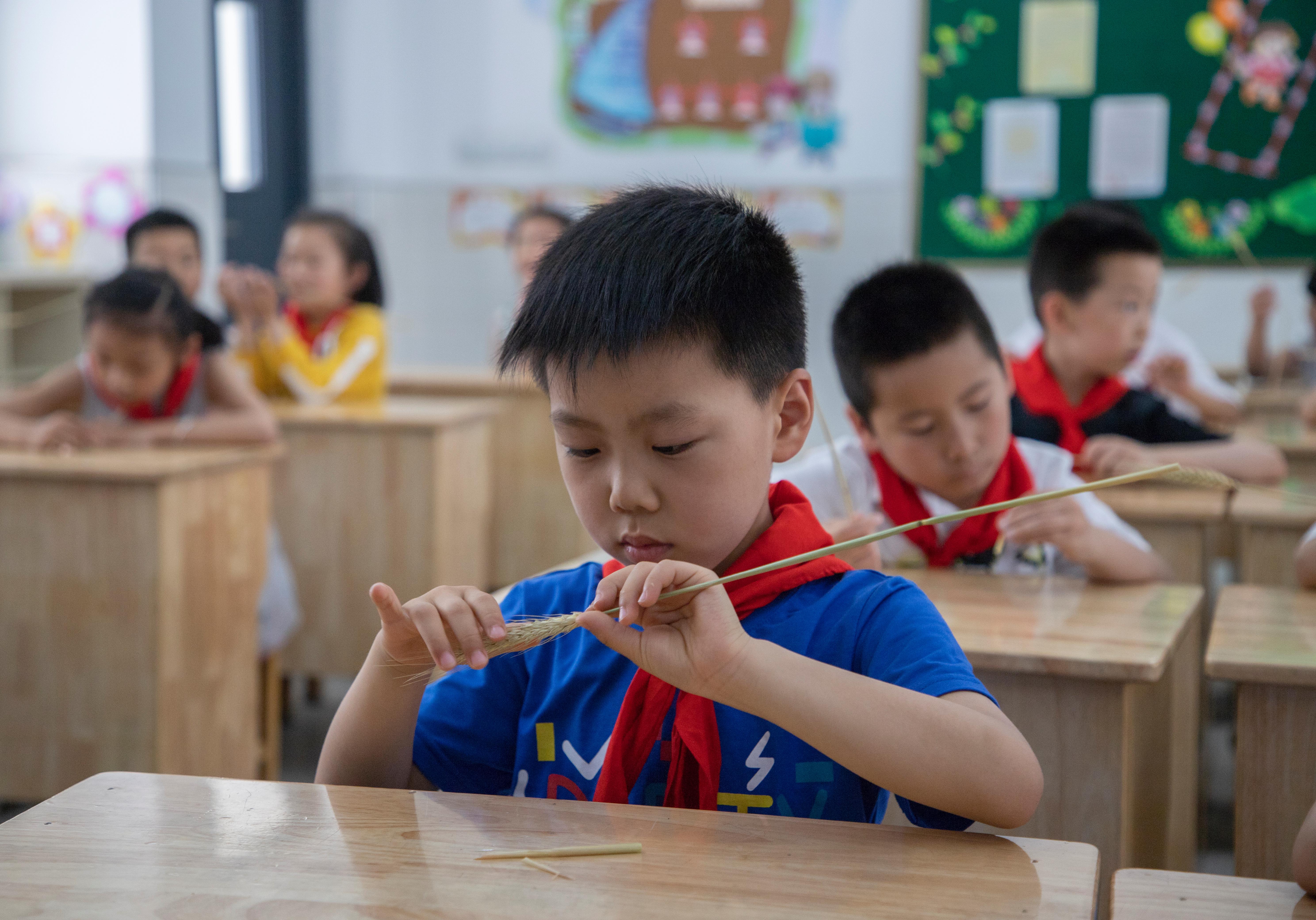 活动中,志愿者结合小学生的认知特点,向他们讲解了芒种的由来、时间分布、天气特征和习俗。在讲解的过程中,志愿者引导孩子们通过观察小麦的形状及其组成部分。最后志愿者向孩子们介绍了芒种节气里的传统节日端午节,并带着孩子们制作了端午节习俗纸盘贴画。