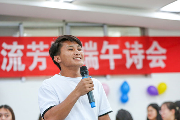 承办的“‘粽香蒲月,古韵流芳’端午诗会”汉语角特别活动在创客空间举行,十多名留学生和近二十名藏族、维吾尔族的学生共同参加了活动。